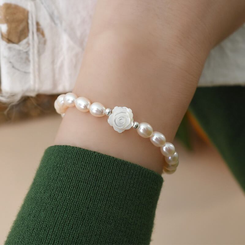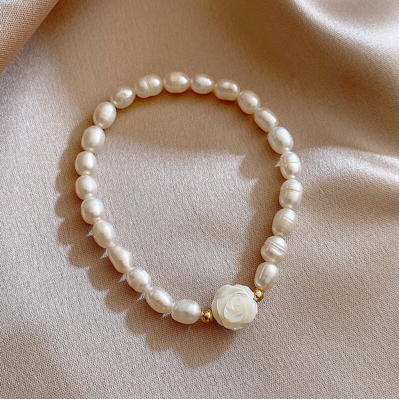 送料無料 バロックパールストリングフラワーチャームブレスレット2022多目的ジュエリーパーティーガールズスウィートアクセサリーウーマンブレスレット 大人ガーリー キュート カジュアル 真珠 フラワーデザイン アクセサリー AE7653285215285450