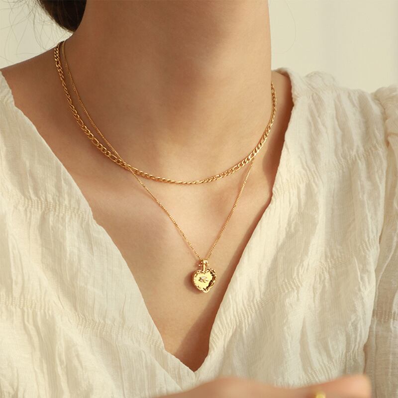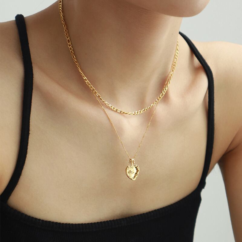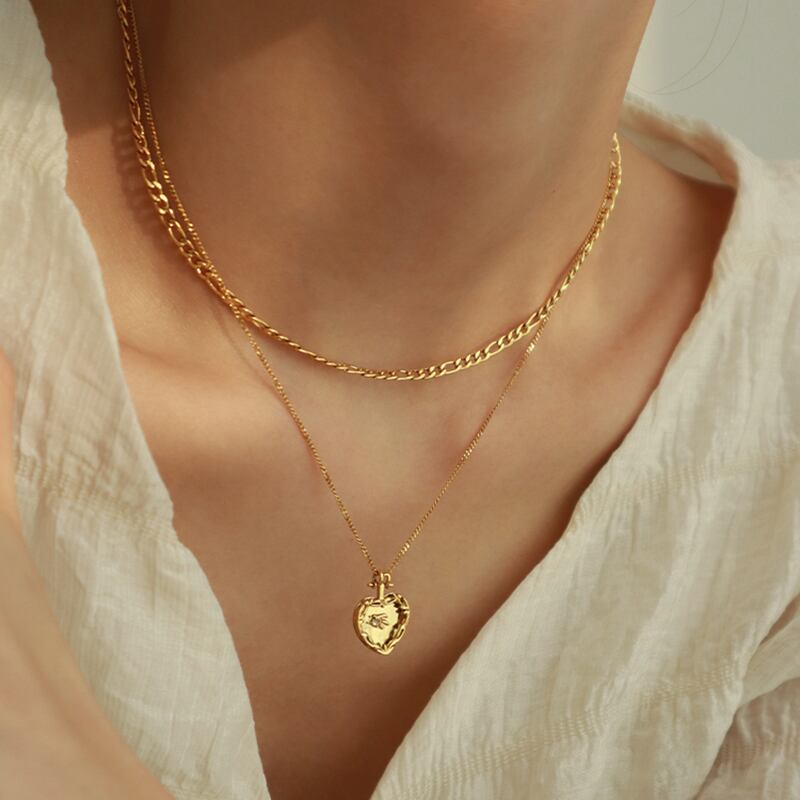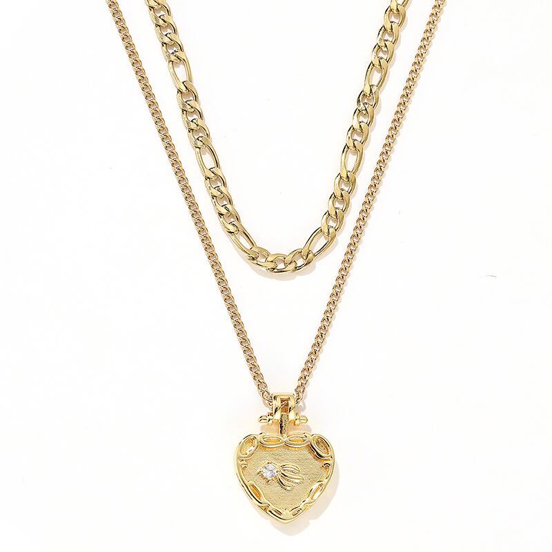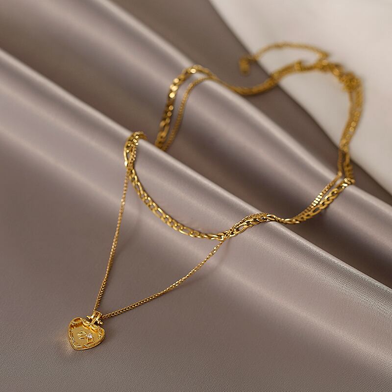 送料無料 ヨーロッパとアメリカの二重層ステンレス鋼ゴールドネックレスセンスハートペンダントネックレス女性ジュエリー レッド レース ヨーロピアン アクセサリー AE765322856265037