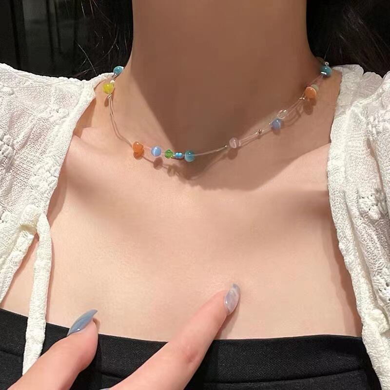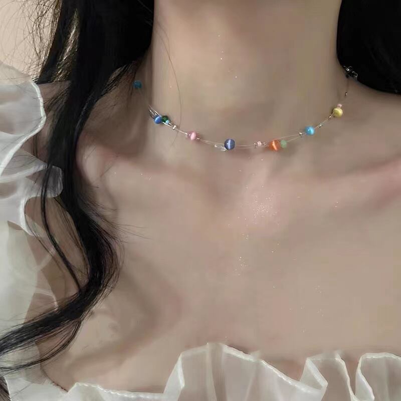 送料無料 カラフルなオパールフローティングスターフィッシュラインネックレス2022パーティーガールの珍しいネックチェーンレディースジュエリーアクセサリー レース アクセサリー AE7653229880279956