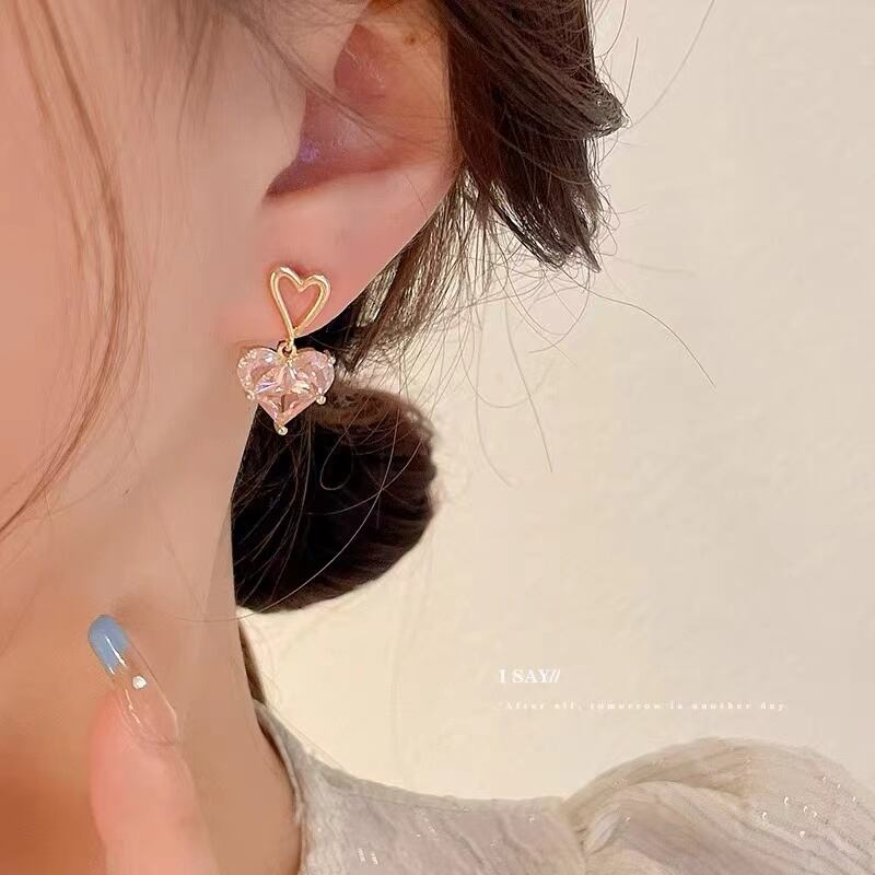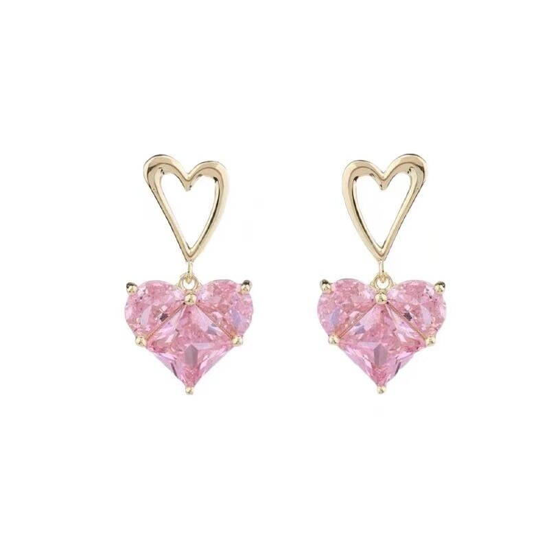 送料無料 2022プレミアムピンクジルコンハート型ペンダントイヤリング学生ガールズスウィートアクセサリーパーティーウィメンズラグジュアリーセットジュエリー 大人ガーリー キュート カジュアル 指輪 アクセサリー AE7653280374102784