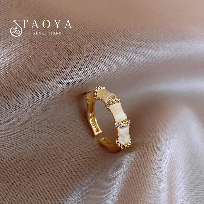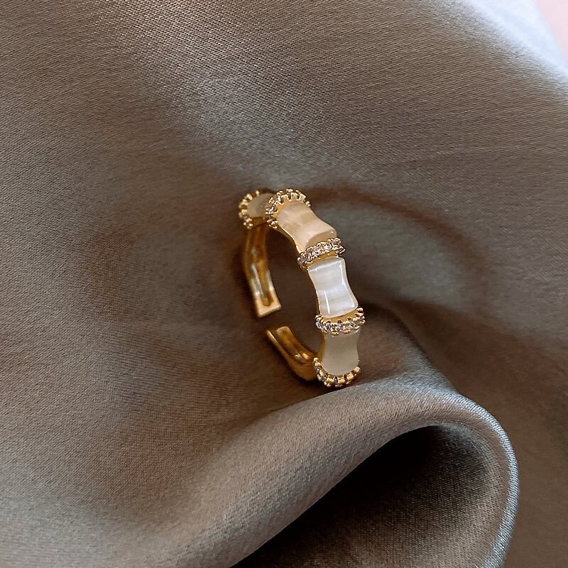 送料無料 ユニークセンスオパールバンブーモデリングゴールドオープンリングジュエリーパーティーウィメンズガールズラグジュアリーアクセサリーギフト 指輪 アクセサリー AE7653285261811423