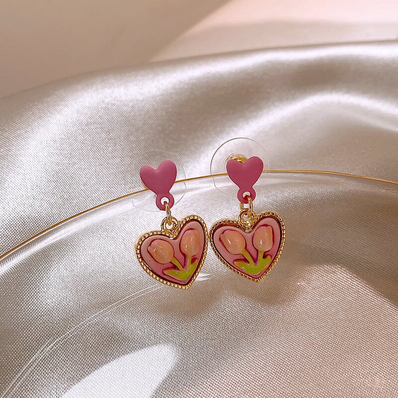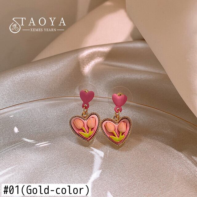 送料無料 ガールズスウィートピンクチューリップフラワーハート型ダングルピアス2022アクセサリーパーティーレディースジュエリー イヤリング 大人ガーリー キュート カジュアル リング 指輪 フラワーデザイン アクセサリー AE7653252802008053