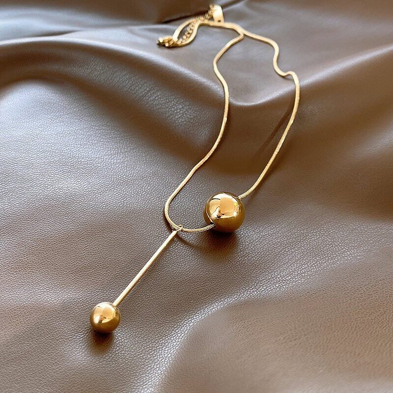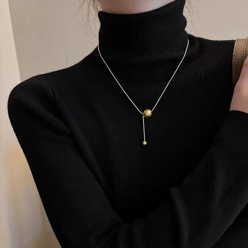 送料無料 ヨーロッパとアメリカのシンプルなゴールデンボールペンダントステンレス鋼ショートネックレス非退色ジュエリーセクシーなネックチェーンの女性 レース ヨーロピアン アクセサリー AE7653238584236804