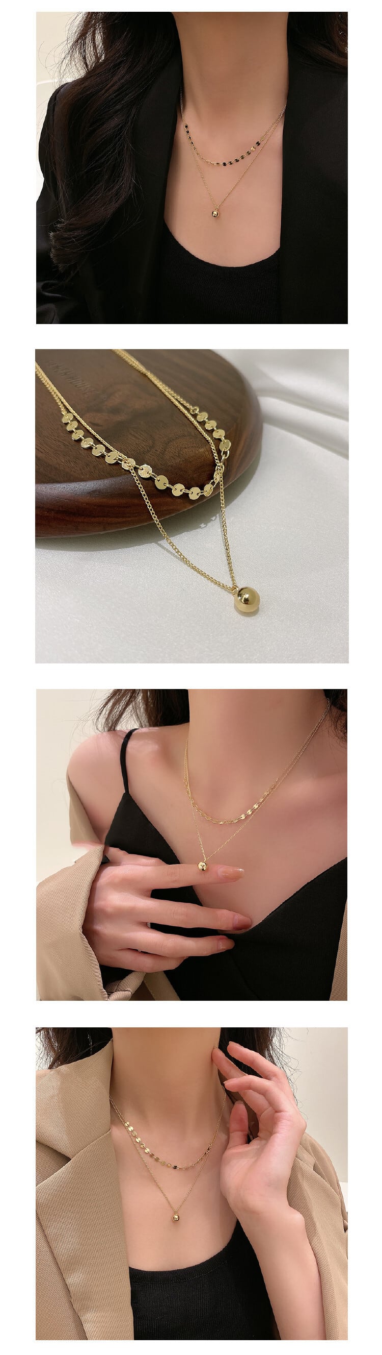 送料無料 ヨーロピアンとアメリカンスタイルのスーパーインポーズメタルウエハースボールペンダントダブルレイヤーチョーカーネックレス女性の2022ジュエリー レース アクセサリー AE7653272247166954