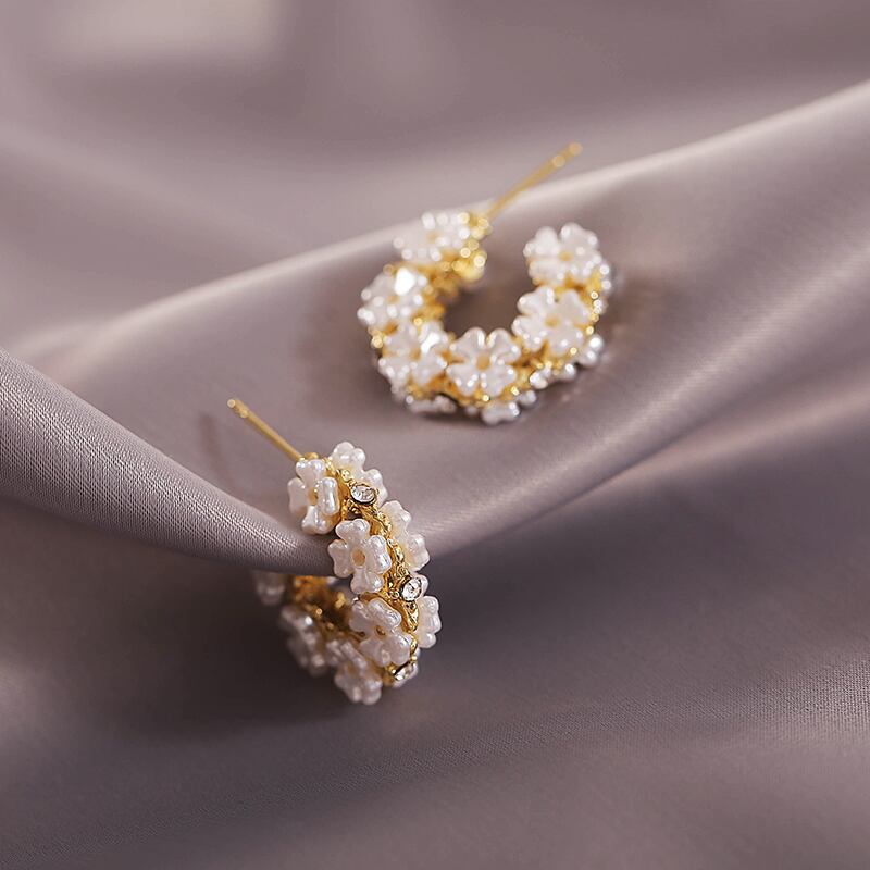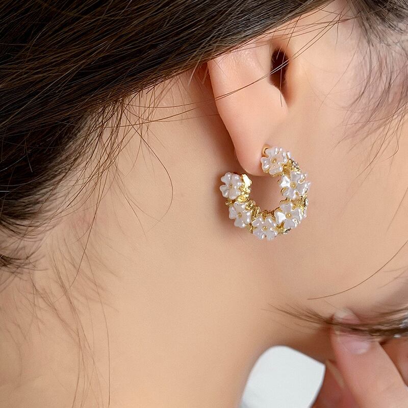 送料無料 2022年ホワイトフラワークラスターC字型ダングルピアススウィートアクセサリーレディースジュエリーパーティー イヤリング 大人ガーリー キュート カジュアル リング 指輪 フラワーデザイン アクセサリー AE7653279182137692