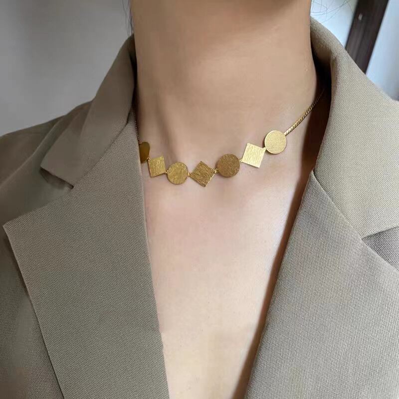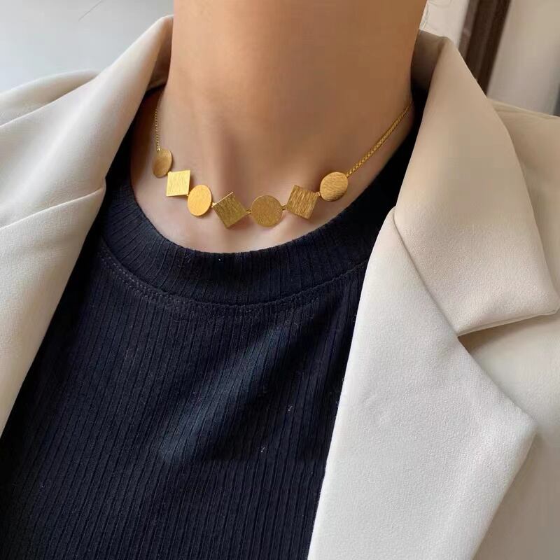 送料無料 ヨーロッパとアメリカのブラシをかけられた幾何学的なステンレス鋼チョーカーネックレスゴシックガールズのセクシーなネックチェーンジュエリー レース ヨーロピアン アクセサリー AE7653277141374001