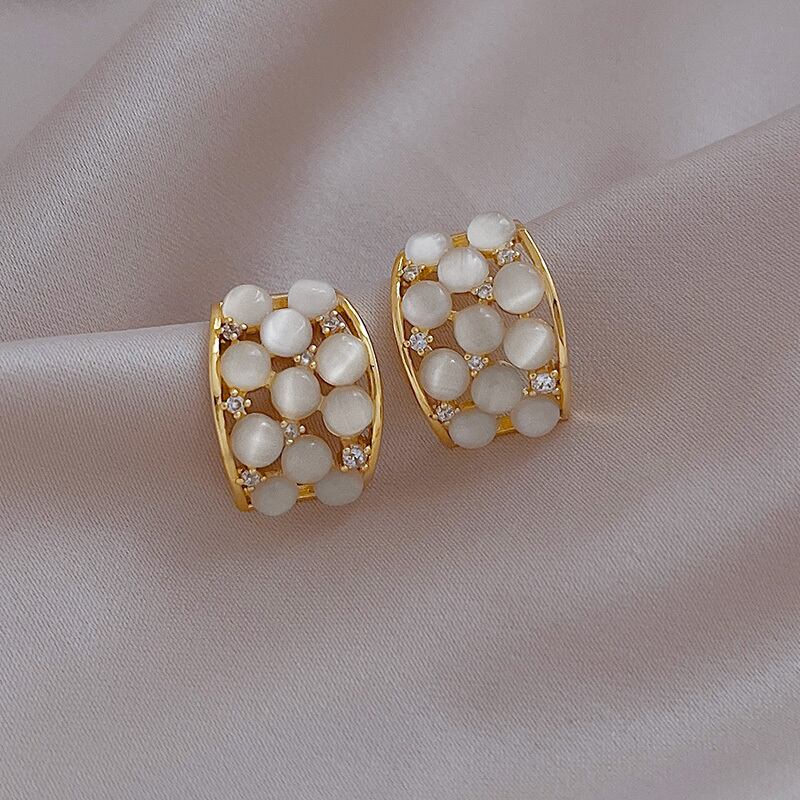 送料無料 2022ラウンドオパール象眼細工の幾何学的なアークイヤリングパーティー女性の高級ジュエリーアクセサリー女の子 指輪 アクセサリー AE7653212250910154