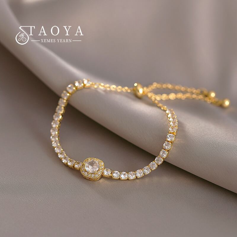 送料無料 2022年豪華な象眼細工のジルコンスクエアを引っ張ってチャームブレスレットパーティーを調整することができます絶妙なジュエリーレディースブレスレット スクウェア アクセサリー AE7653256481703273