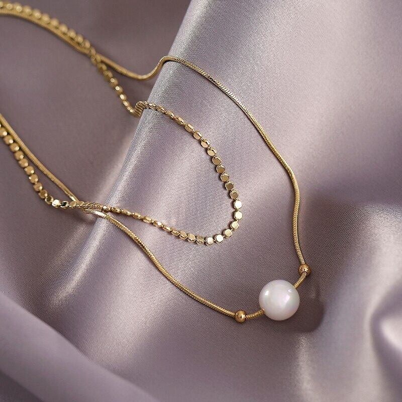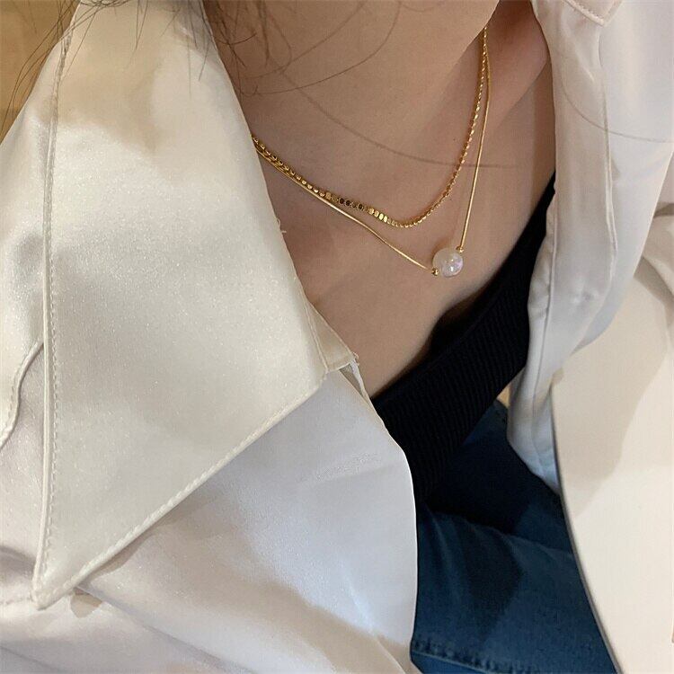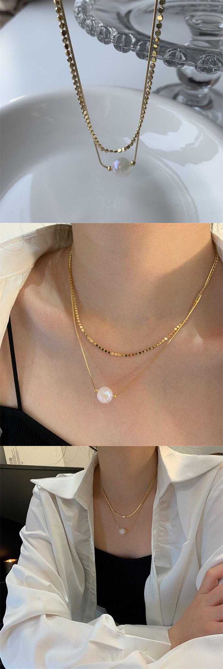 送料無料 スタイルマジックパールペンダントダブルレイヤーメタルネックレス2022ネックチェーンレディースセクシージュエリーアクセサリー レース 真珠 アクセサリー AE7653239623065048