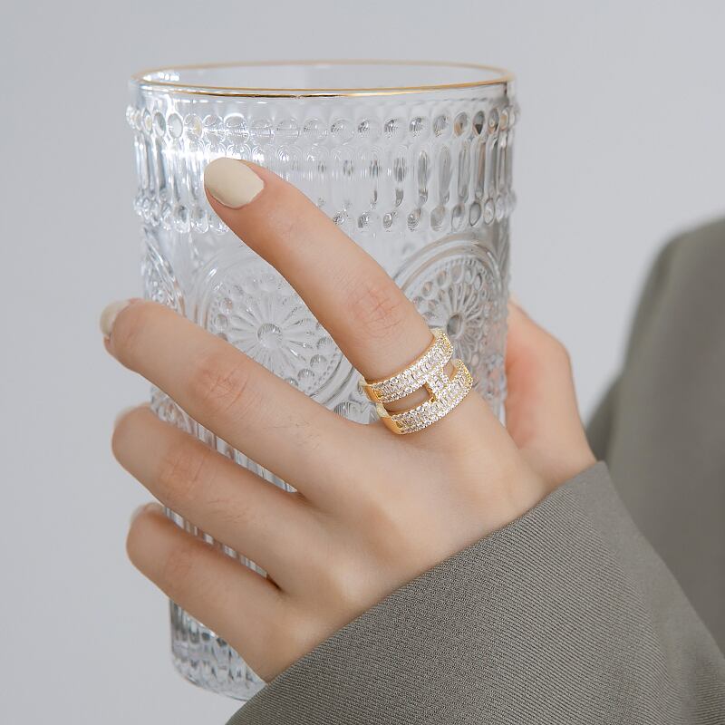 送料無料 センスラグジュアリーマイクロセッティングジルコンシャイニーゴールドレターリングウーマンズジュエリーゴスパーティー珍しいアクセサリー 指輪 アクセサリー AE7653249905852579
