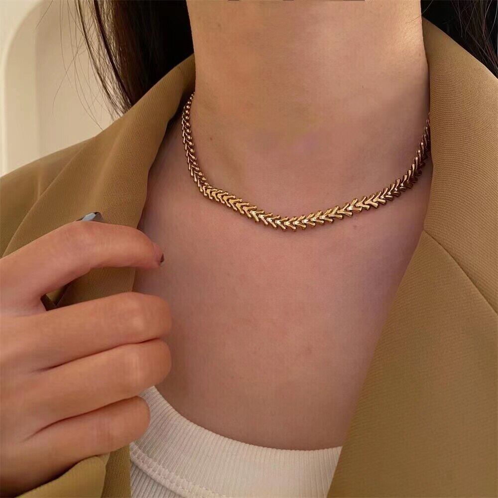 送料無料 2022年の骨の形のステンレス鋼のチョーカーネックレスは宝石を色あせないセクシーなアクセサリーパーティーの女性のネックレス レース アクセサリー AE7653276898211164