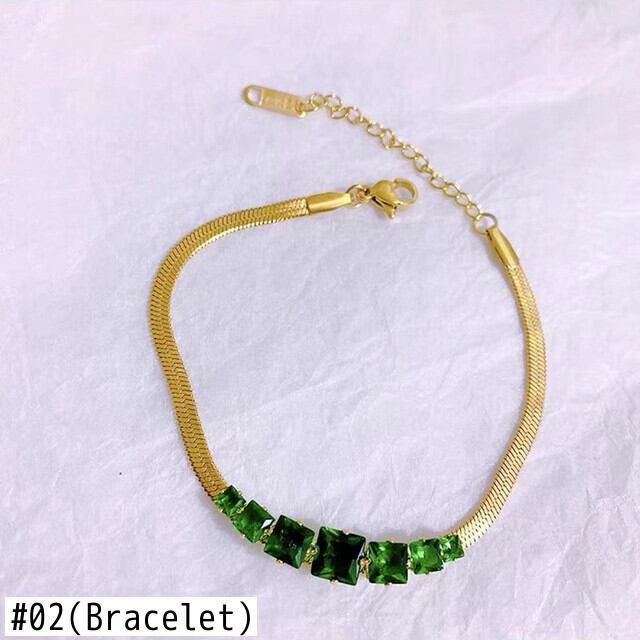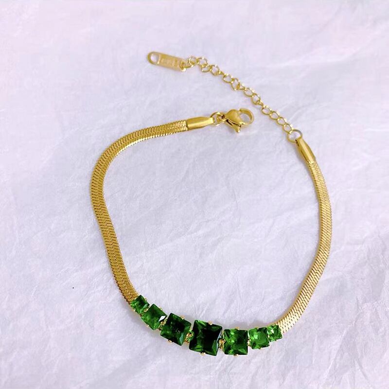送料無料 ヨーロッパとアメリカのグリーンクリスタルステンレススチールゴールドネックレス女性の色あせないジュエリー高級アクセサリー レース ヨーロピアン アクセサリー AE7653241264615060