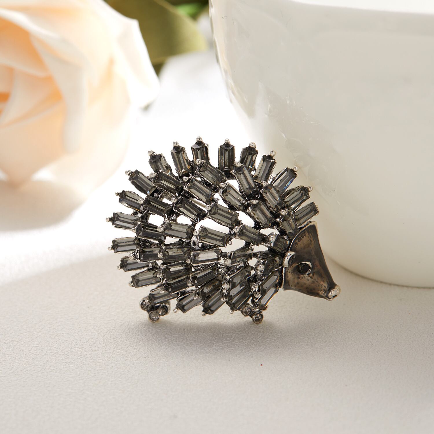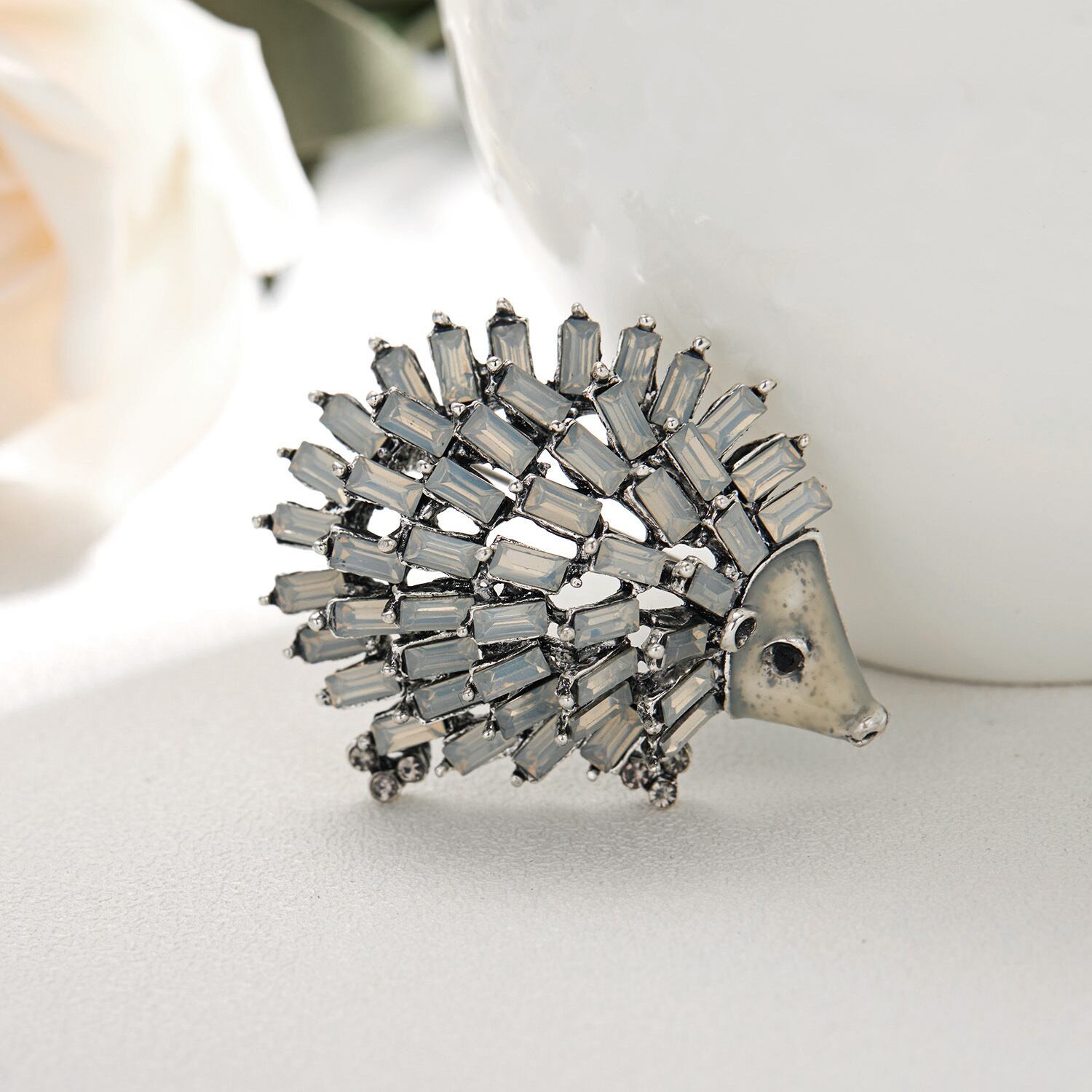 送料無料 漫画の黒猫の動物のブローチ女性の男性のシンプルなヘッジホッグラインストーンバッジ襟章キッズガールズジュエリーギフト ブラック アクセサリー AE1332221698519104198