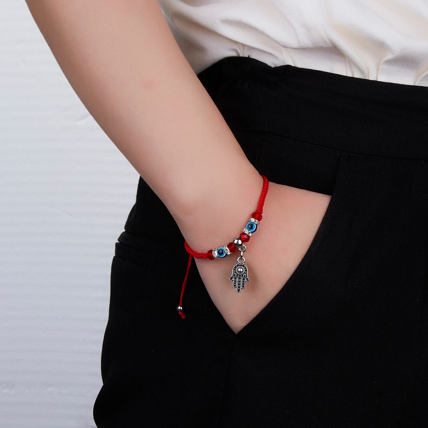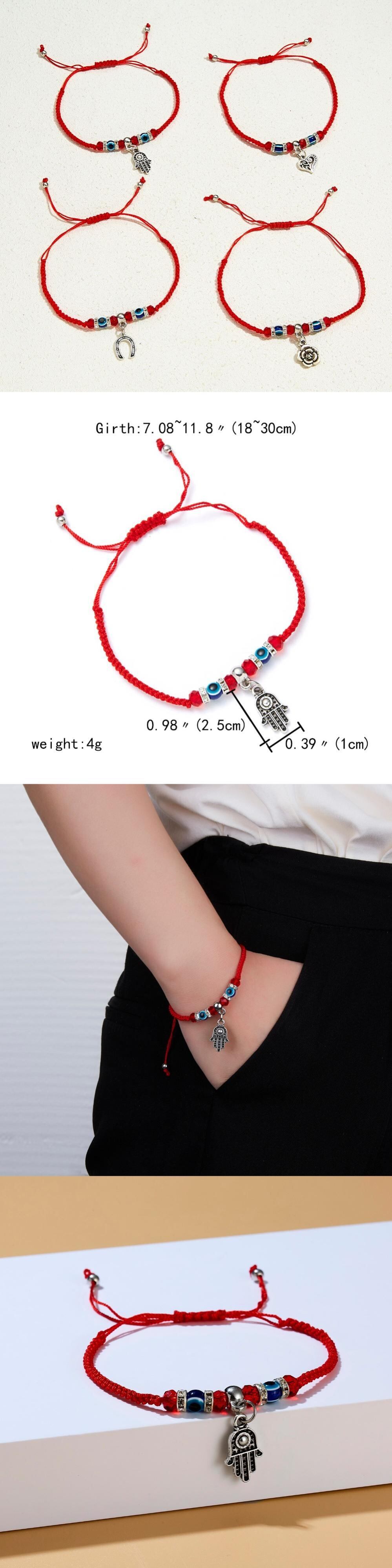 送料無料 9Styles編組ラッキーレッドストリングハムサハンドチャームブレスレットブルーイービルアイビーズブレスレットフレンドシップジュエリー女性男性 アクセサリー AE1332221679305035861