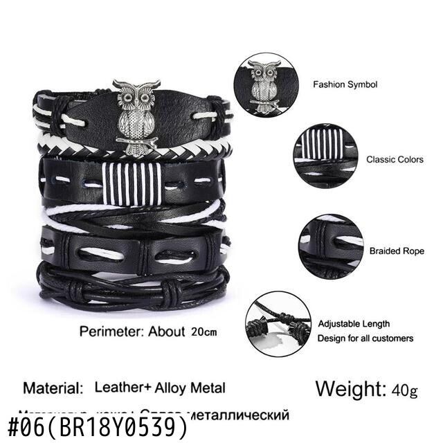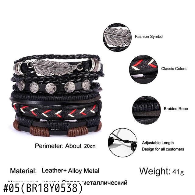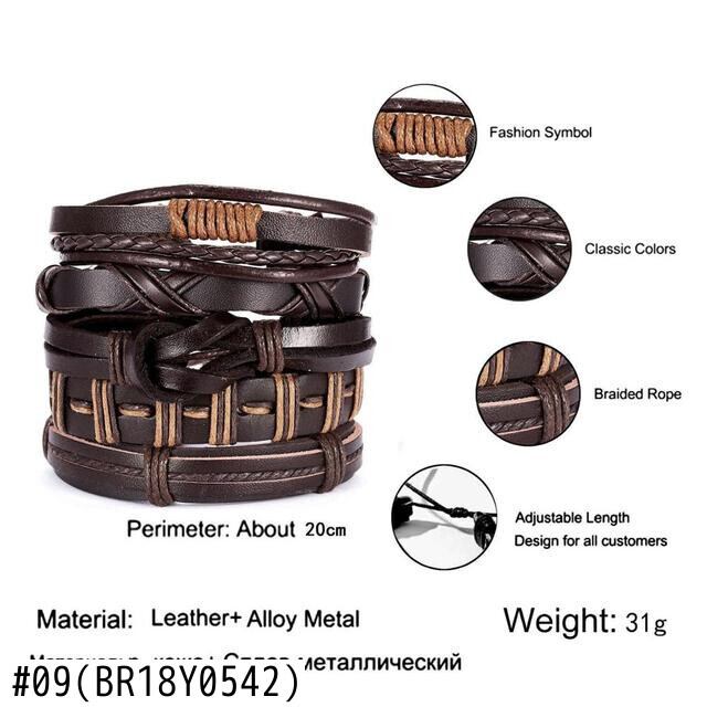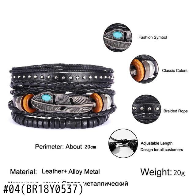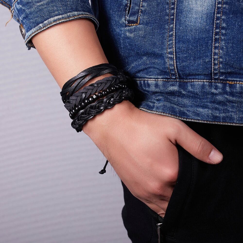 送料無料 RINHOO 4pcs / SetVintageLeatherビーズブレスレットメンズリストストラップラップパンクブラックブレイドジュエリーバングルブレスレット レザー ビンテージ アクセサリー AE1332221621127683469
