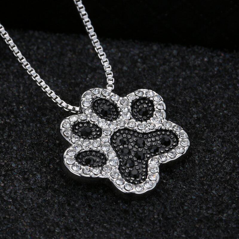 送料無料 リンフークリスタルアニマルキャットドッグフットプリントペンダントネックレスジュエリーウーマンクリスタルペンダントネックレスビジュージュエリー レース アクセサリー AE1332221654620855420