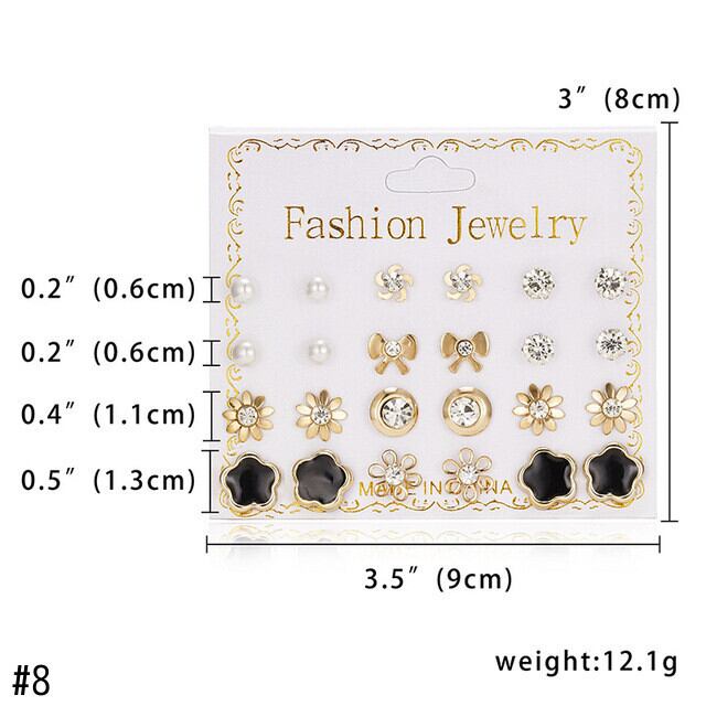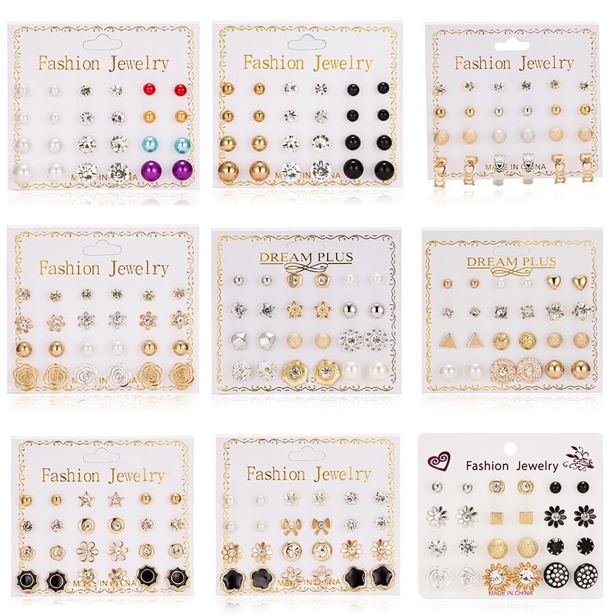 送料無料 12ペア/セットクリスタルビーズスタッドピアスセット女性幾何学的な花の蝶結びパールイヤリングステートメントパーティージュエリーギフト リボン 真珠 指輪 フラワーデザイン アクセサリー AE1332221653745195398