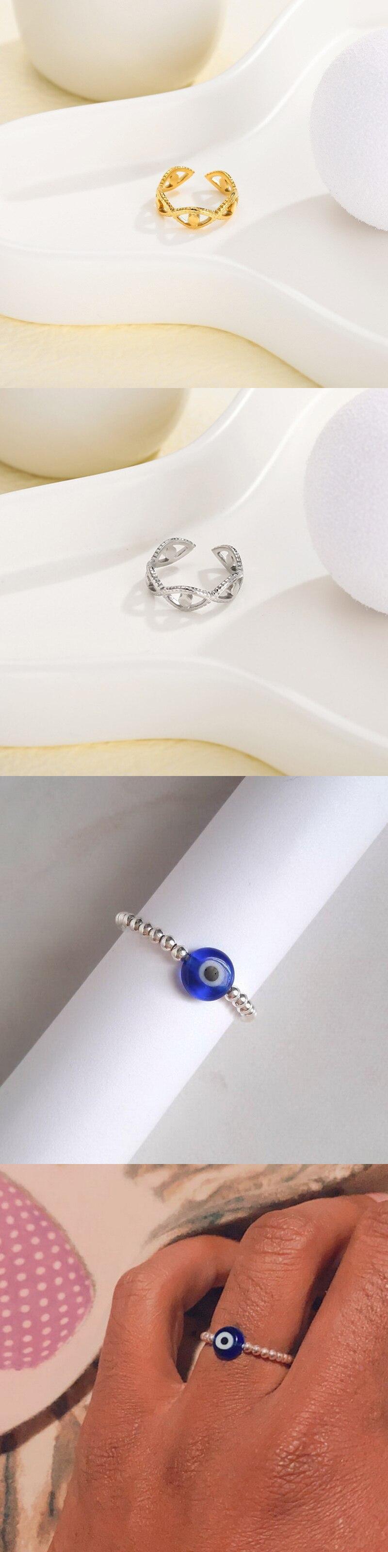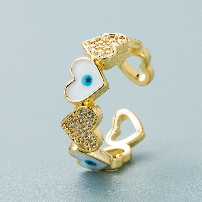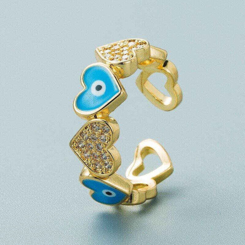 送料無料 ブルーイービルアイハートジルコンリング女性チャーム幾何学的なオープンゴールドカラーリング友情ギフトジュエリー 指輪 アクセサリー AE1332221644521270903
