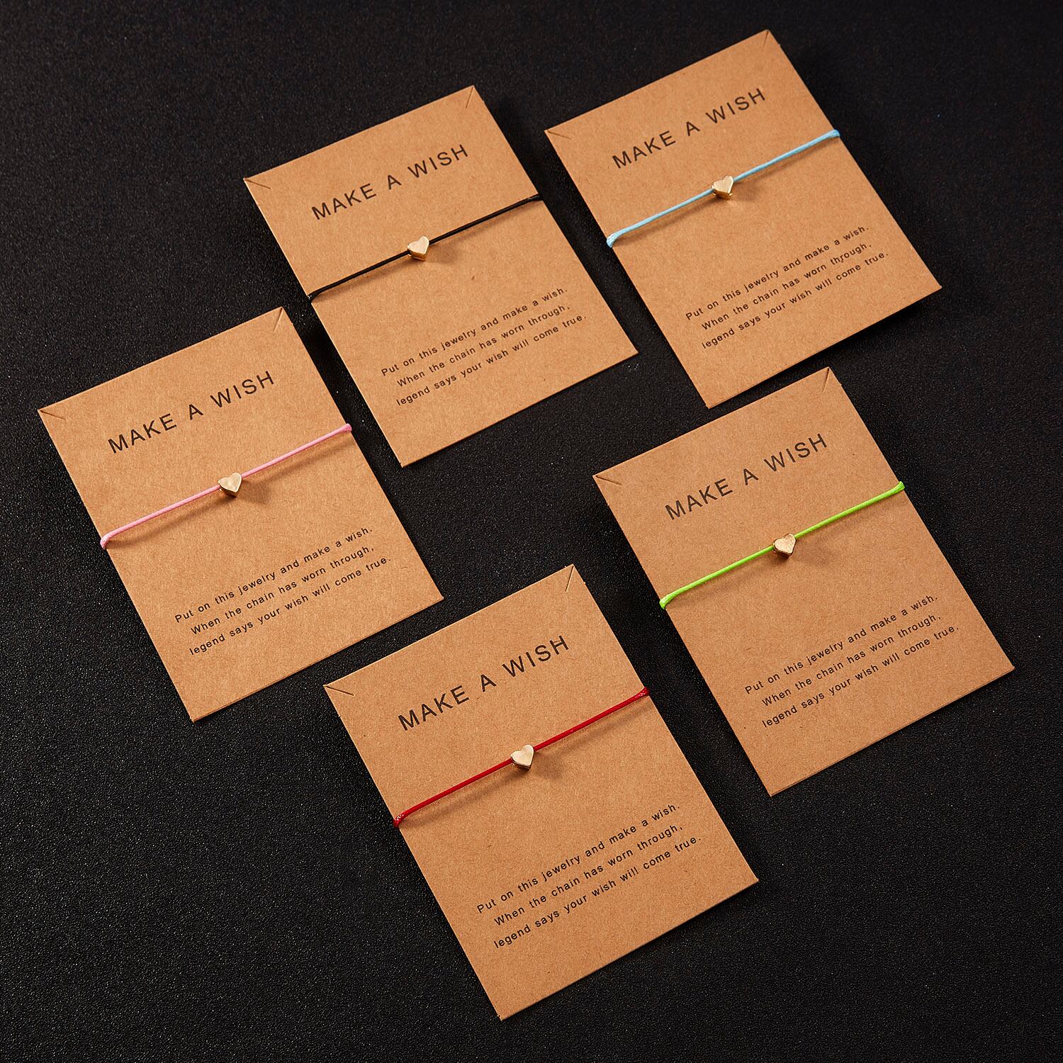 送料無料 Rinhoo5色メイクアウィッシュカードアジャスタブルブレスレットハンドメイドラブチャームウーブンブレスレットレディースジュエリーギフト15-30cm アクセサリー AE1332221645216307914