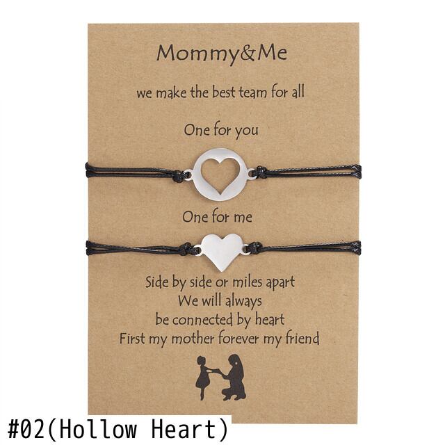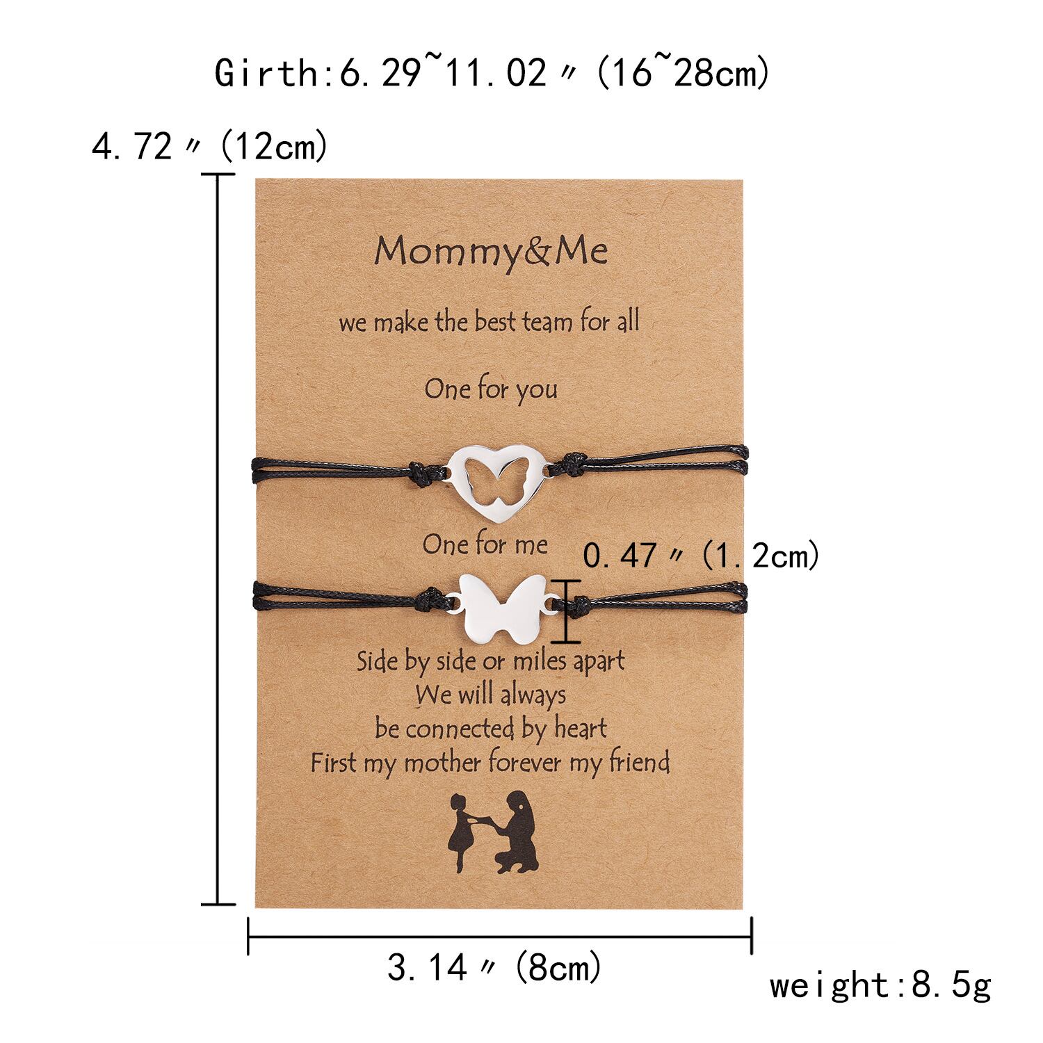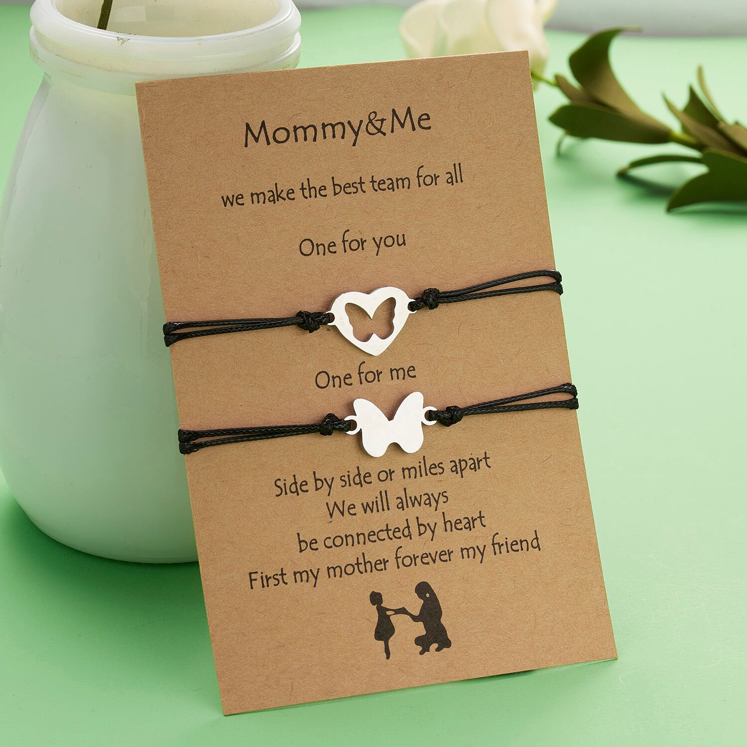 送料無料 母の日ブレスレット2ペア/セットステンレススチール中空バタフライハートペンダント調節可能なロープチェーンブレスレットママ アジャスタブル アクセサリー AE1332221629817871257