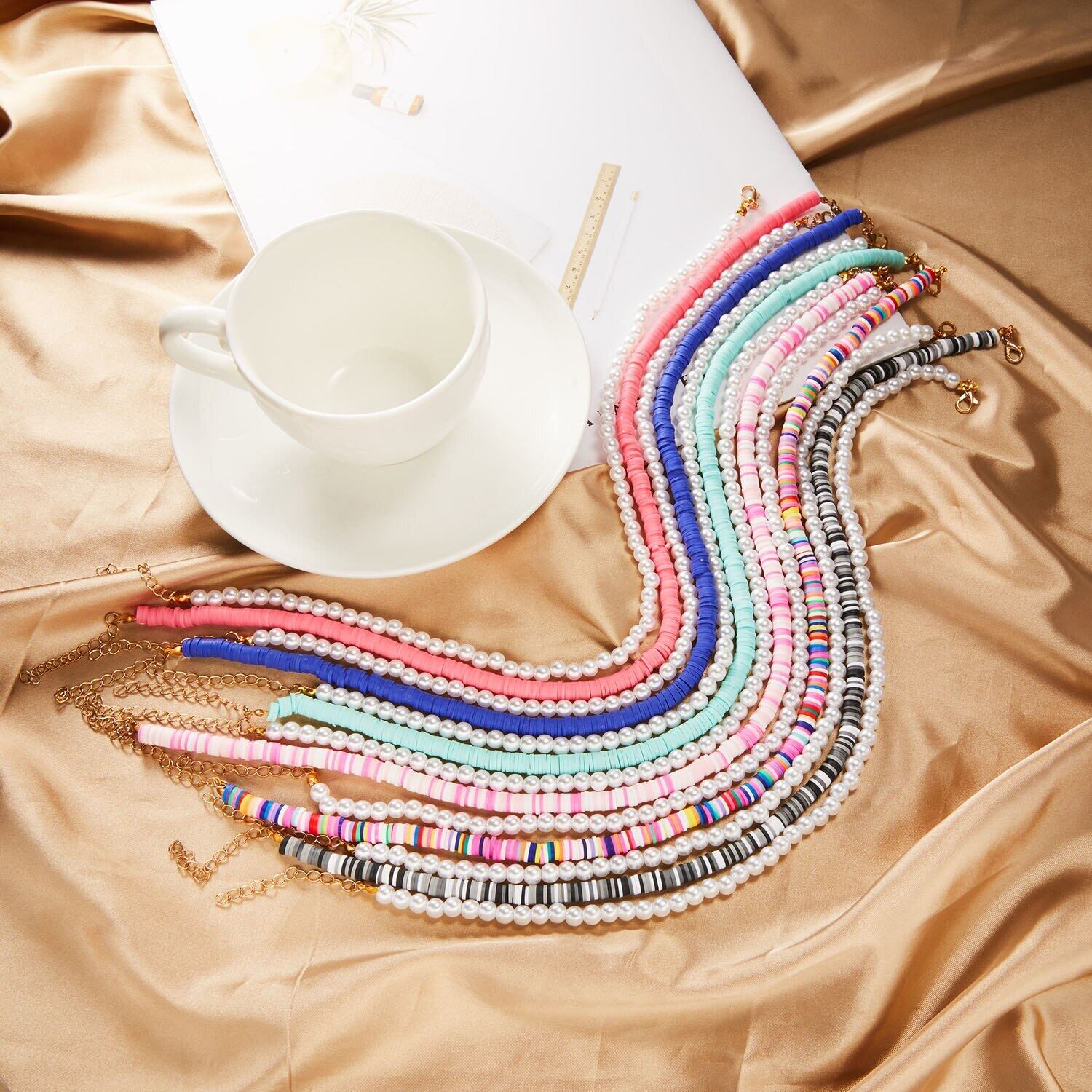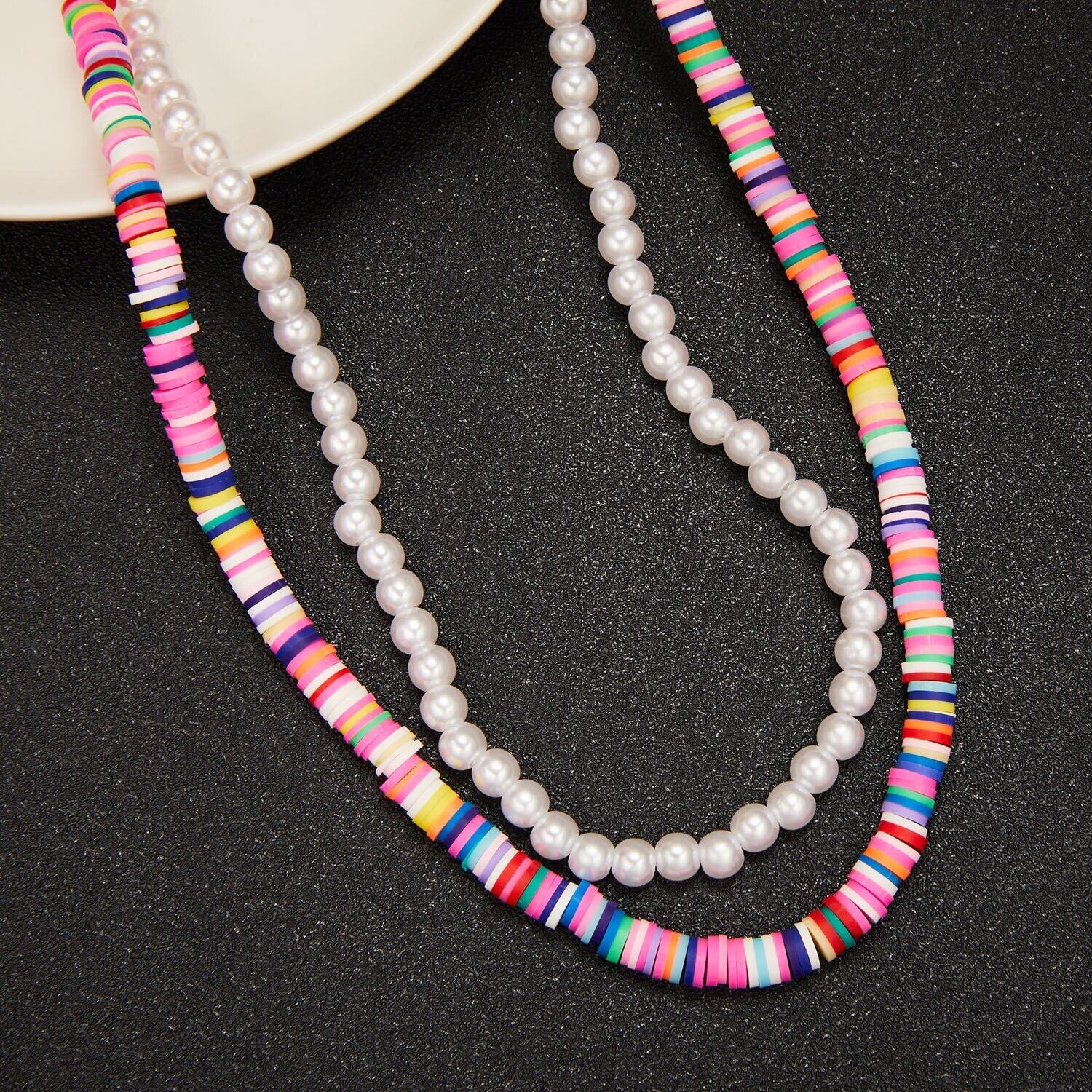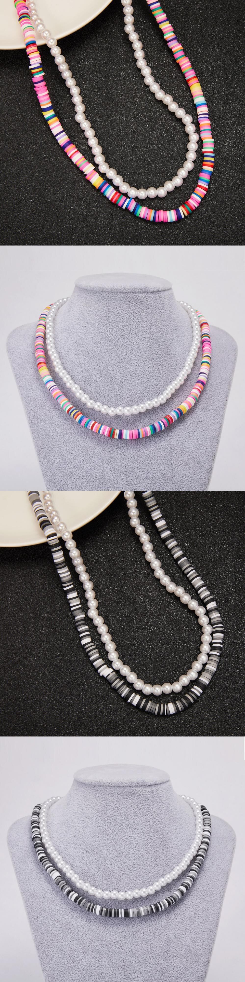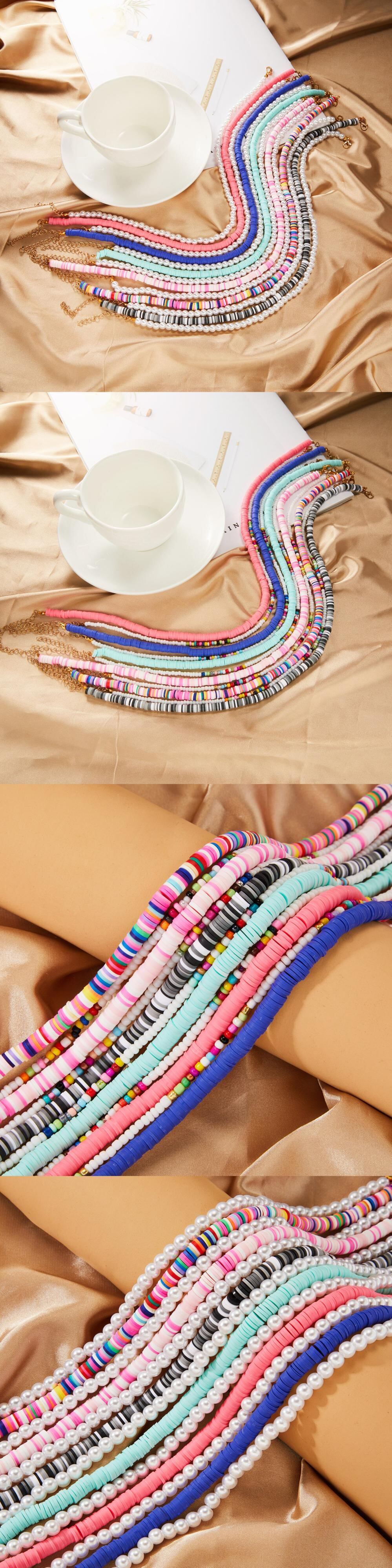 送料無料 トレンディなストランドビーズチョーカーネックレス女性多層カラフルなポリマークレイパールクラビクルチェーンネックレスカラージュエリー レース マルチレイヤー 真珠 アクセサリー AE1332221696015827638