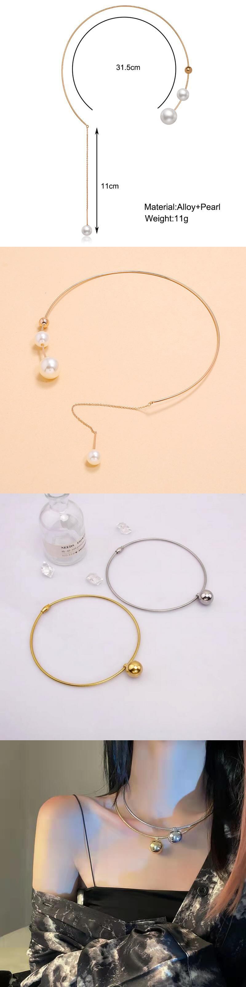 送料無料 クリエイティブ幾何学的ビッグラウンドパールオープンネックレス女性テルチャームカラー鎖骨チェーンネックレスジュエリー レース 真珠 アクセサリー AE133222165193494870