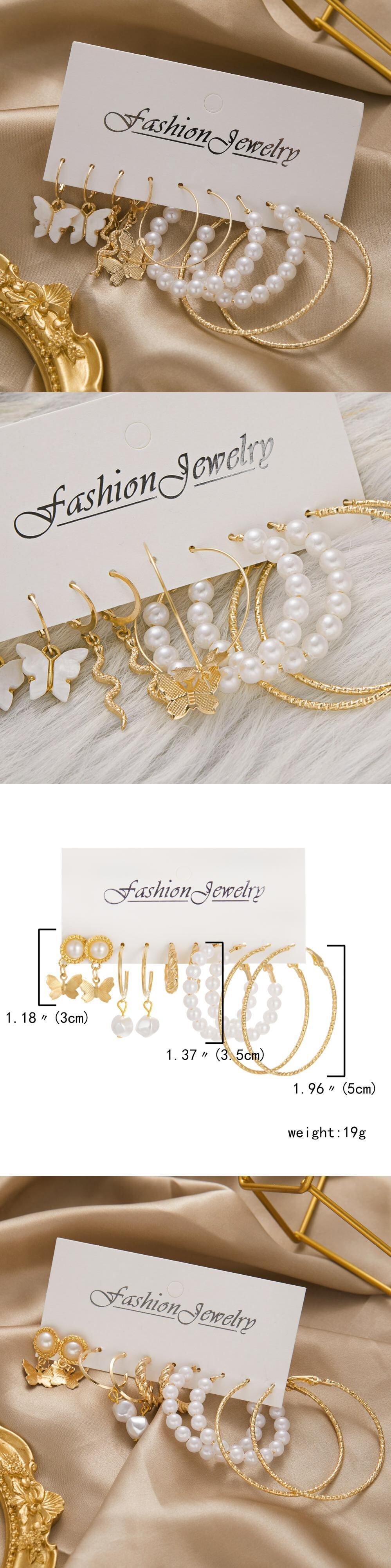 送料無料 6ペアハートバタフライイヤリングセットビッグサークルピアスイヤリングジュエリー女性イミテーションパールフープかわいいイヤーバックル 大人ガーリー スウィート キュート カジュアル 真珠 指輪 アクセサリー AE133222166852323056