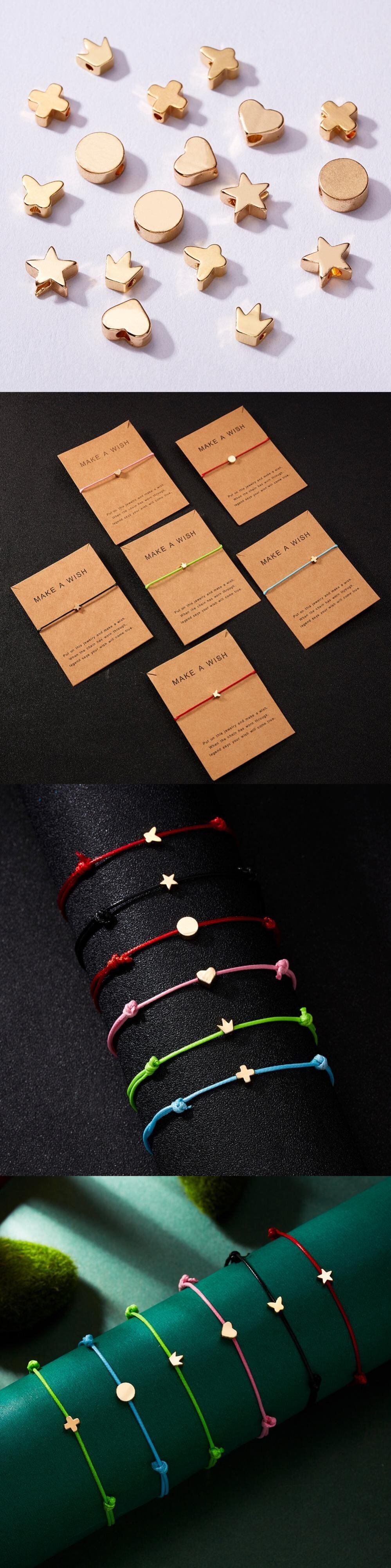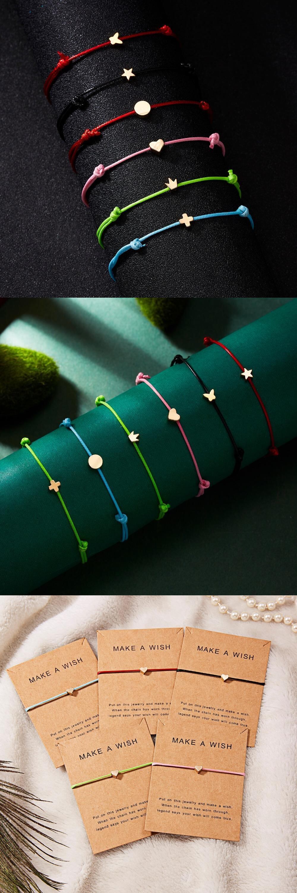 送料無料 Rinhooウーブンアジャスタブルブレスレットカードインフィニティラブゴールドクラウンスターチャームブレスレットガールズジュエリー アクセサリー AE1332221645213161528