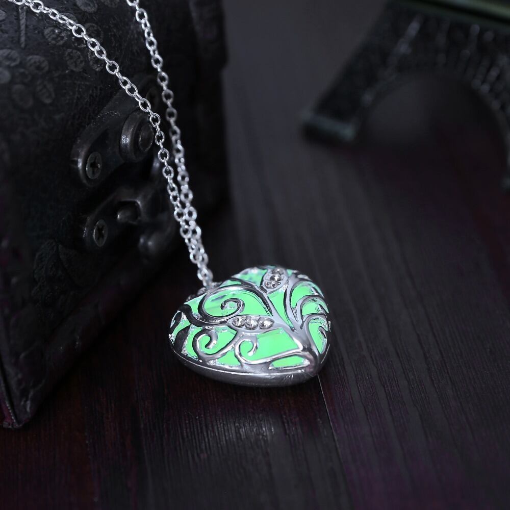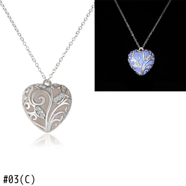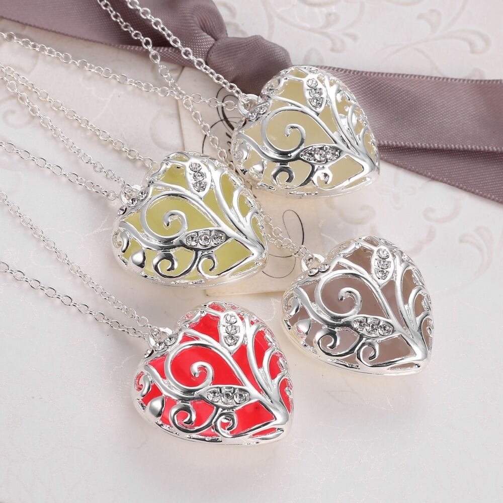 送料無料 グローインザダークネックレスチョッカーホロウハートロケットグローイングストーンペンダントステンレススチールチェーンネックレス女性 レース アクセサリー AE1332221644249378809