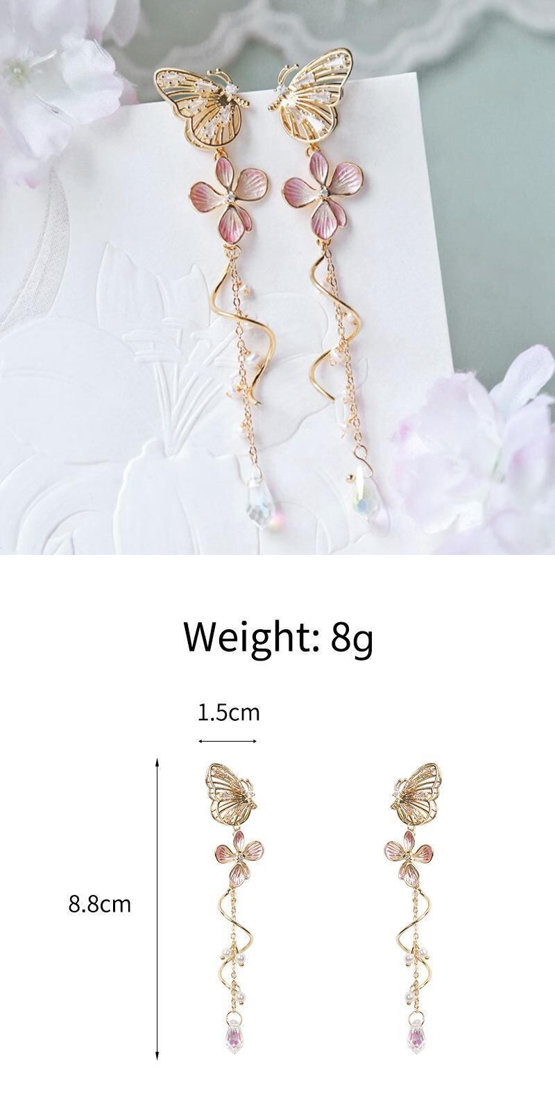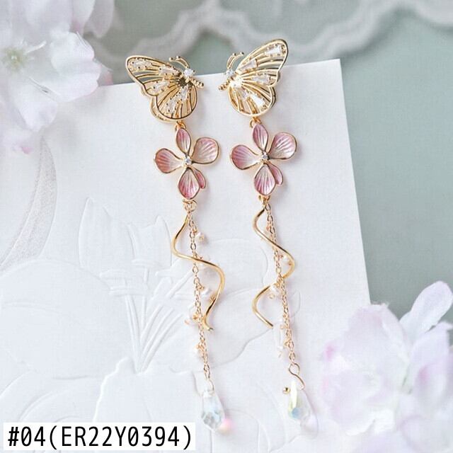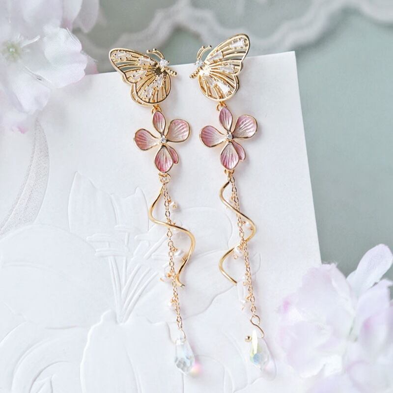 送料無料 中空バタフライイヤリング女性スウィートピンクフラワースパイラルテルロングダングルピアス気質ジュエリーギフト 大人ガーリー キュート カジュアル 指輪 フラワーデザイン アクセサリー AE1332221630515629371
