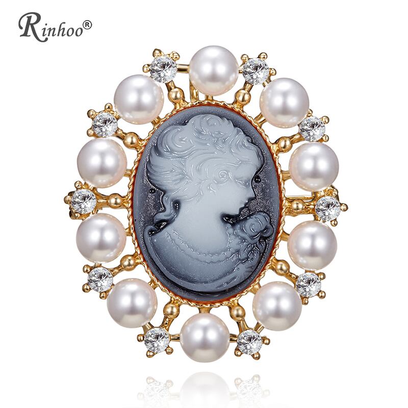 送料無料 RINHOOアンティークゴールドカラーヴィンテージシミュレートパールブローチピンジュエリークイーンカメオブローチラインストーン女性クリスマス 真珠 人工 ビンテージ アクセサリー AE1332221634356876013