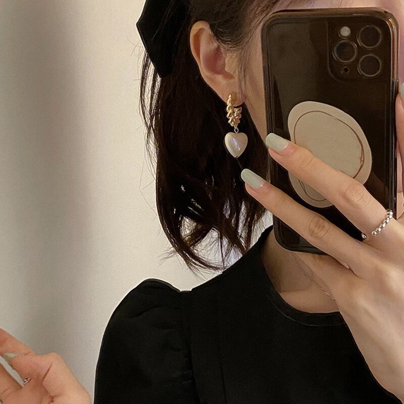 送料無料 ハートパールファインイヤリング女性ゴールデンサークルスウィートイヤリングジュエリーギフト 大人ガーリー キュート カジュアル 真珠 指輪 アクセサリー AE1332221684524834066