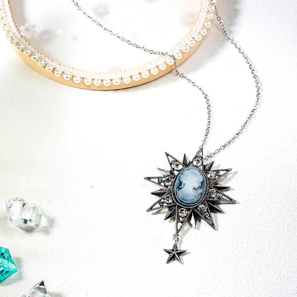 送料無料 ロングネックレスRinhooヴィンテージビューティーヘッドセーターチェーンペンダントネックレスレディガールスペシャルウィメンズジュエリーギフト レース ビンテージ アクセサリー AE13322216668934765