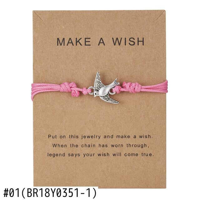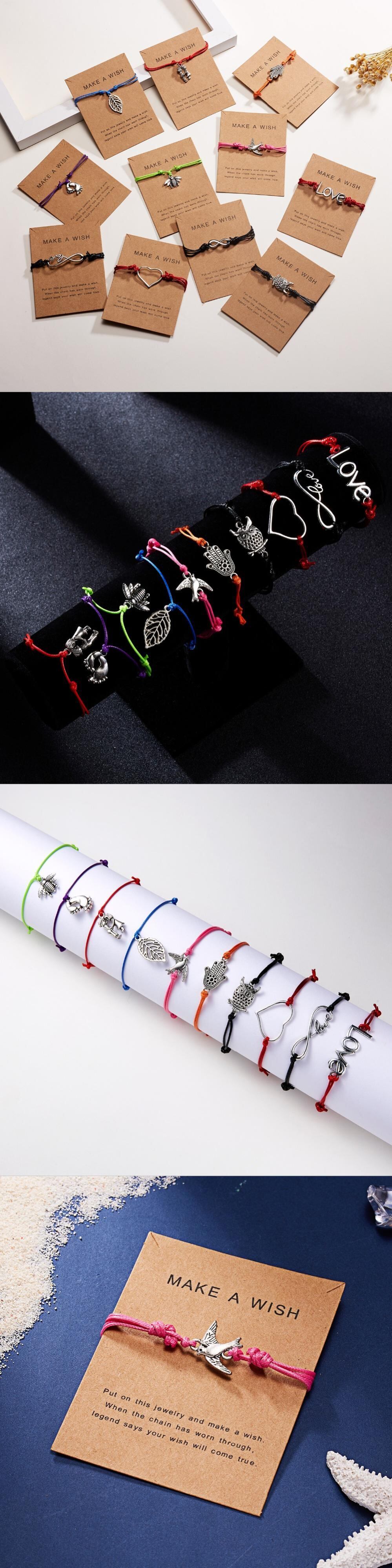 送料無料 1PC Simple Heart Love Feet Bee Owl Infinite "8" Adjustable Rope Chain Bracelet With MAKE A WISH Cardboard Charm Jewelry Gift アジャスタブル ブレスレット チェーン アクセサリー AE1332221623854714015