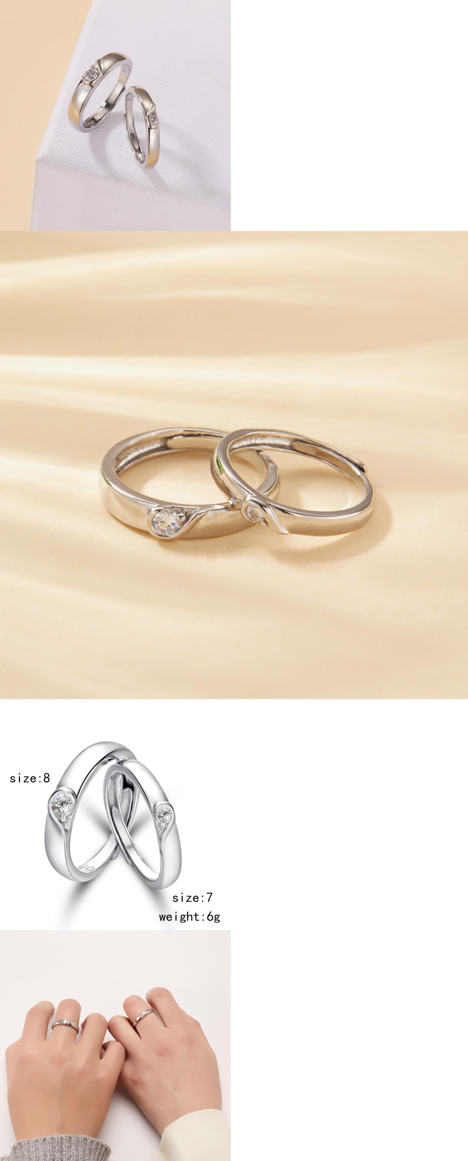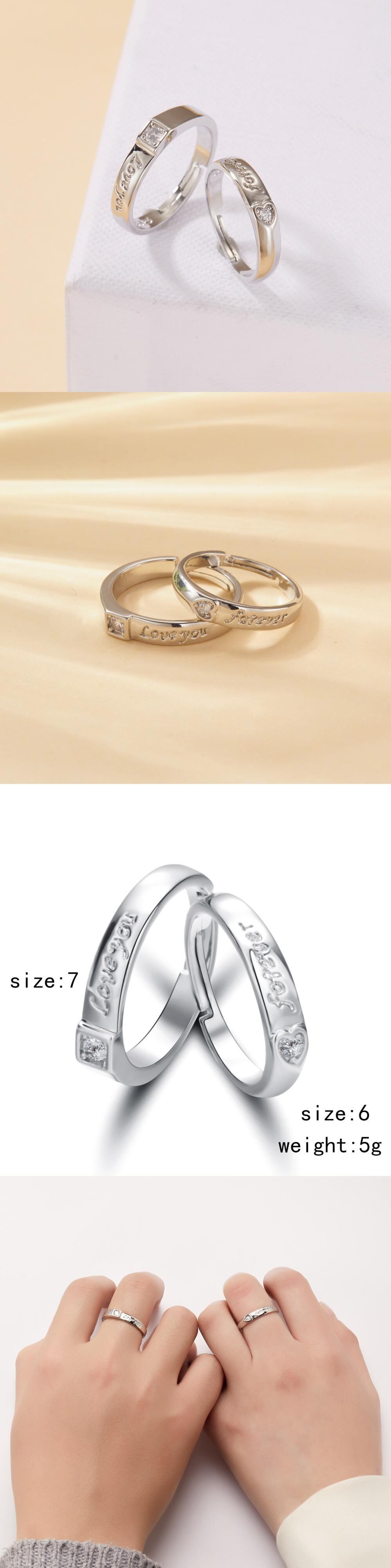 送料無料 ハートカップルリングラバー銅ジルコンアジャスタブルオープニングリングアニバーサリーエンゲージメントジュエリーギフト 指輪 アクセサリー AE1332221690521073312