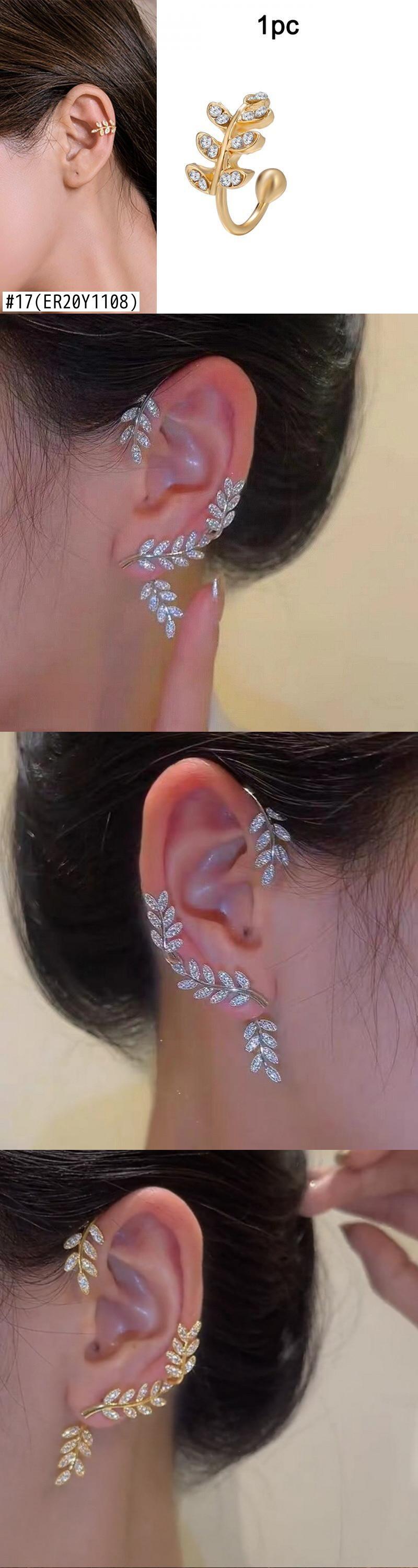 送料無料 スパークリングクリスタルリーフイヤークリップ非ピアスイヤリング女性の葉バタフライイヤーカフクリップジュエリーギフト アクセサリー AE1332221672817177010