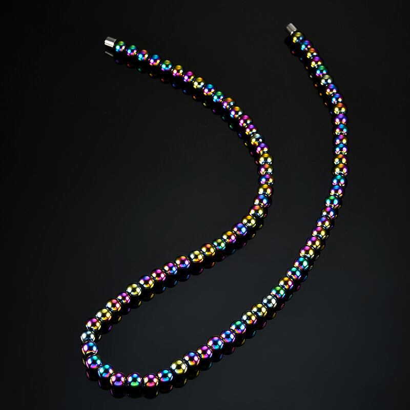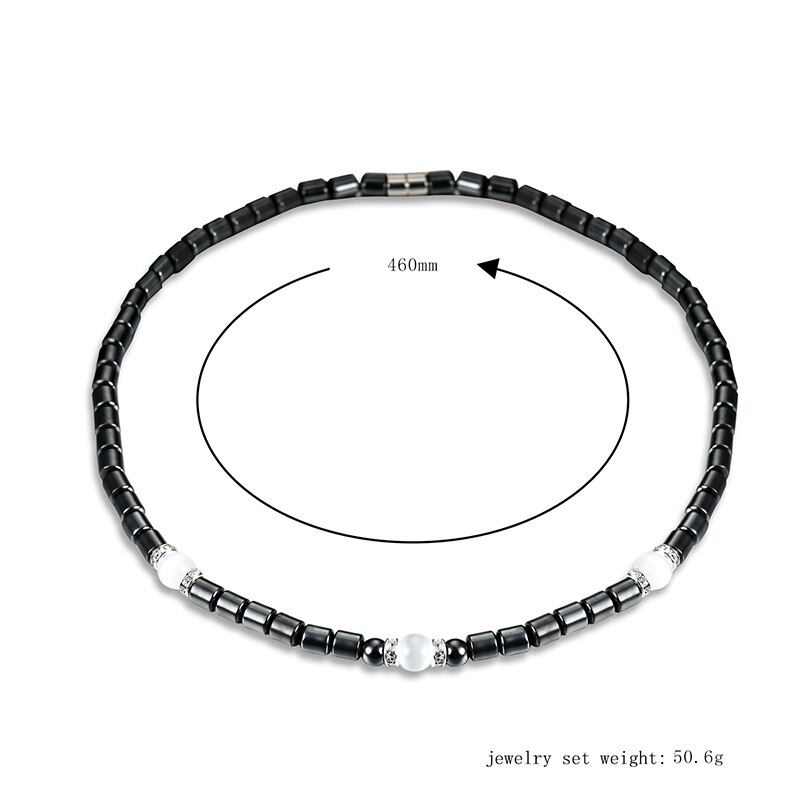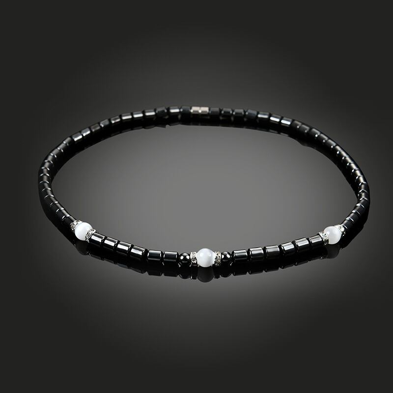 送料無料 シンプルなクリック磁気ヘマタイトビーズネックレス女性男性ブラックゴールドビーズセラピーケアネックレスジュエリーギフト レース アクセサリー AE1332221653611711679