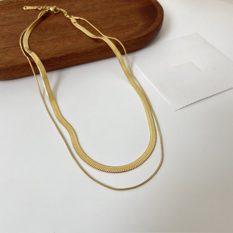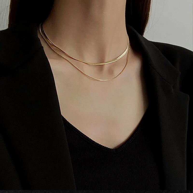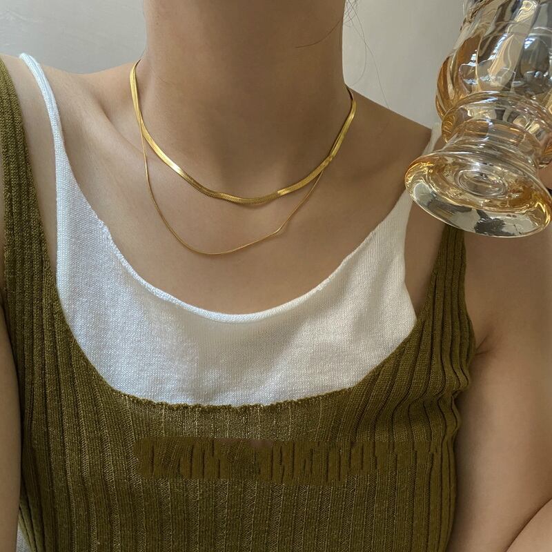 送料無料 ステンレス鋼多層スネークチェーンチョーカーネックレス女性シンプル鎖骨チェーンネックレスジュエリー レース アクセサリー AE1332221653739637111