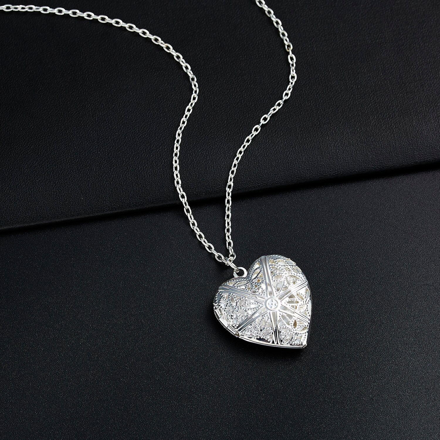 送料無料 中空の彫刻が施されたハート型のPoフレームネックレスを開くことができますPoアルバムペンダントネックレス家族の恋人ギフトジュエリー レース アクセサリー AE1332221677218258104