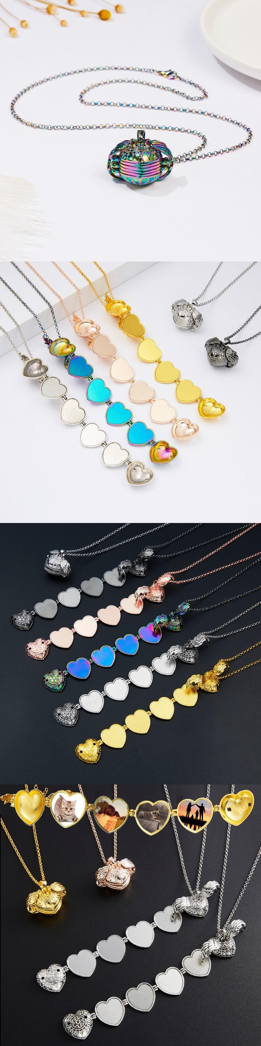 送料無料 ラウンドハート型フローティングロケットネックレスレインボーマジック4ポーペンダントエンジェルウィングフラッシュアルバムボックスネックレスジュエリーギフト レース アクセサリー AE1332221640749136352