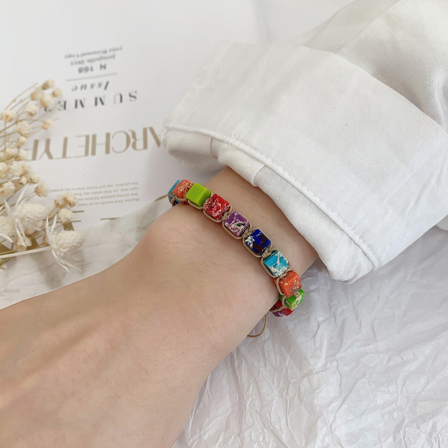送料無料 手作りナチュラルカラフルストーンヨガブレスレット女性男性チャームタイガーアイズビーズヒーリングブレスレットカップルジュエリー 天然 アクセサリー AE1332221697125505914