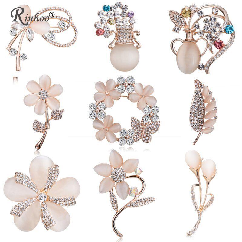 送料無料 RINHOOチャームプラントフラワーリーフブローチ女性ヨーロッパアメリカカラーウェディングパーティージュエリーストーンクリスタルブローチピン フラワーデザイン アクセサリー AE1332221694331464969