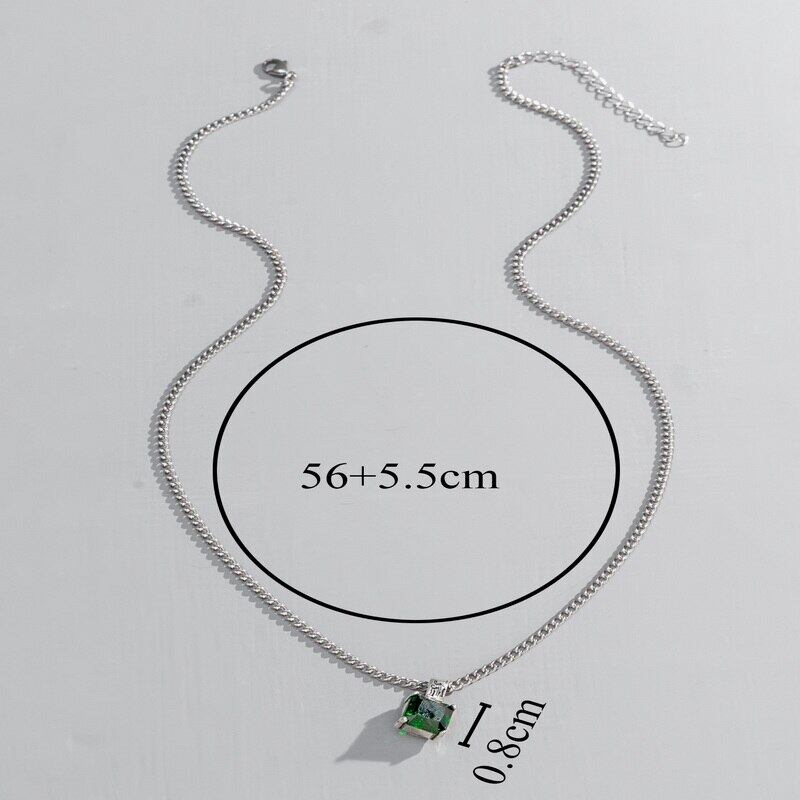送料無料 シンプルなスクエアグリーンクリスタルペンダントネックレス女性チャームジルコンチェーンネックレス中空ジオメトリカラーチェーンジュエリー レース スクウェア アクセサリー AE1332221678907527319
