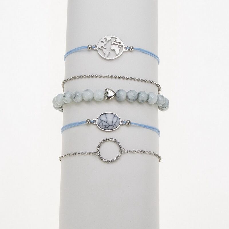 送料無料 リンフーレトロブレスレットセットマップハートラブウーマンビーズジェムレザーチェーンブレスレットセットパーソナリティガールビーチギフト アクセサリー AE1332221665173882062