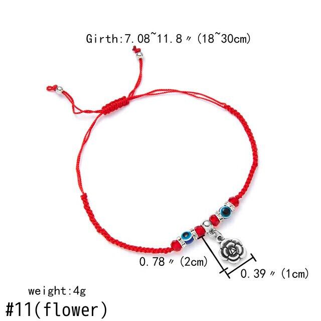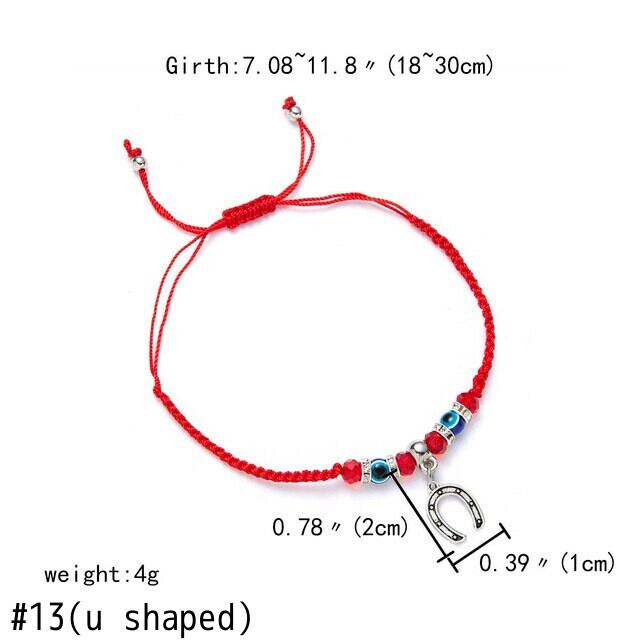 送料無料 ボヘミアブレスレット編みこみロープビーズ邪眼チャームブレスレットクリスタルフクロウタートルアニマルアジャスタブルレッドストリングブレスレット アクセサリー AE1332221622660981736