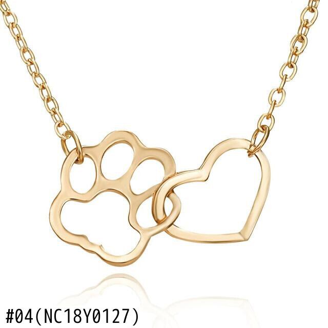 送料無料 ゴールドローズゴールドシルバーカラーかわいい犬の足中空猫の足とハートペンダントクラビクルチェーンネックレススウィートジュエリー レース 大人ガーリー キュート カジュアル 銀 アクセサリー AE1332221621389101910