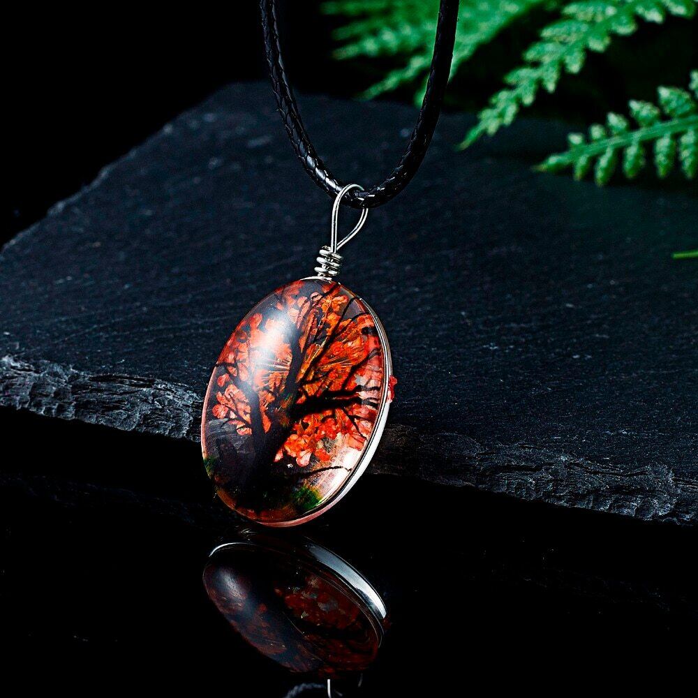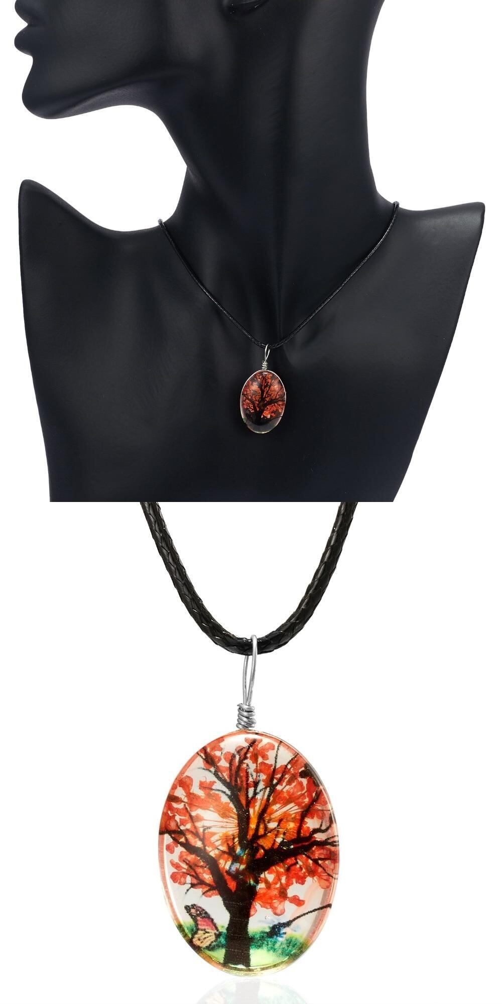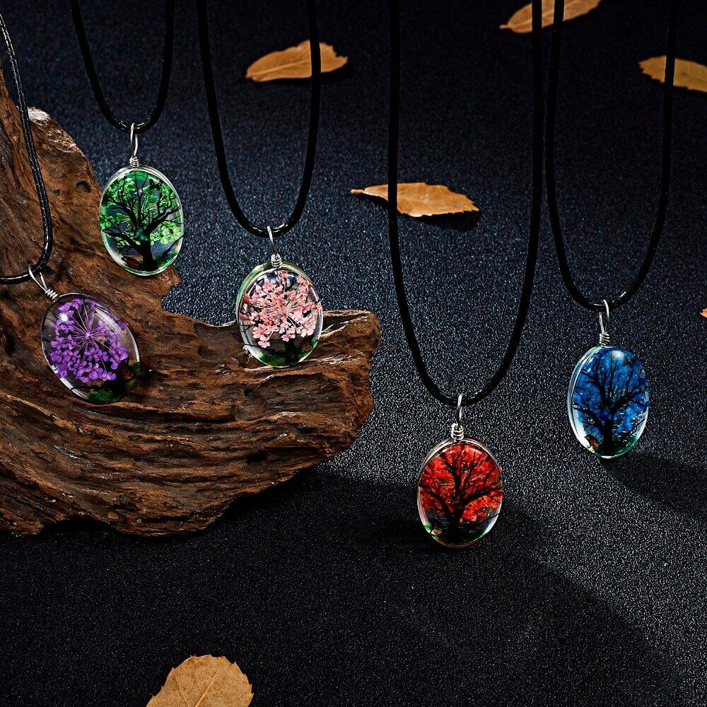送料無料 レトロジュエリーリアルドライフラワーネックレスツリーバタフライオーバルGlボールペンダントネックレスブラックレザーロープネックレス女性 レース フラワーデザイン アクセサリー AE1332221676738859557