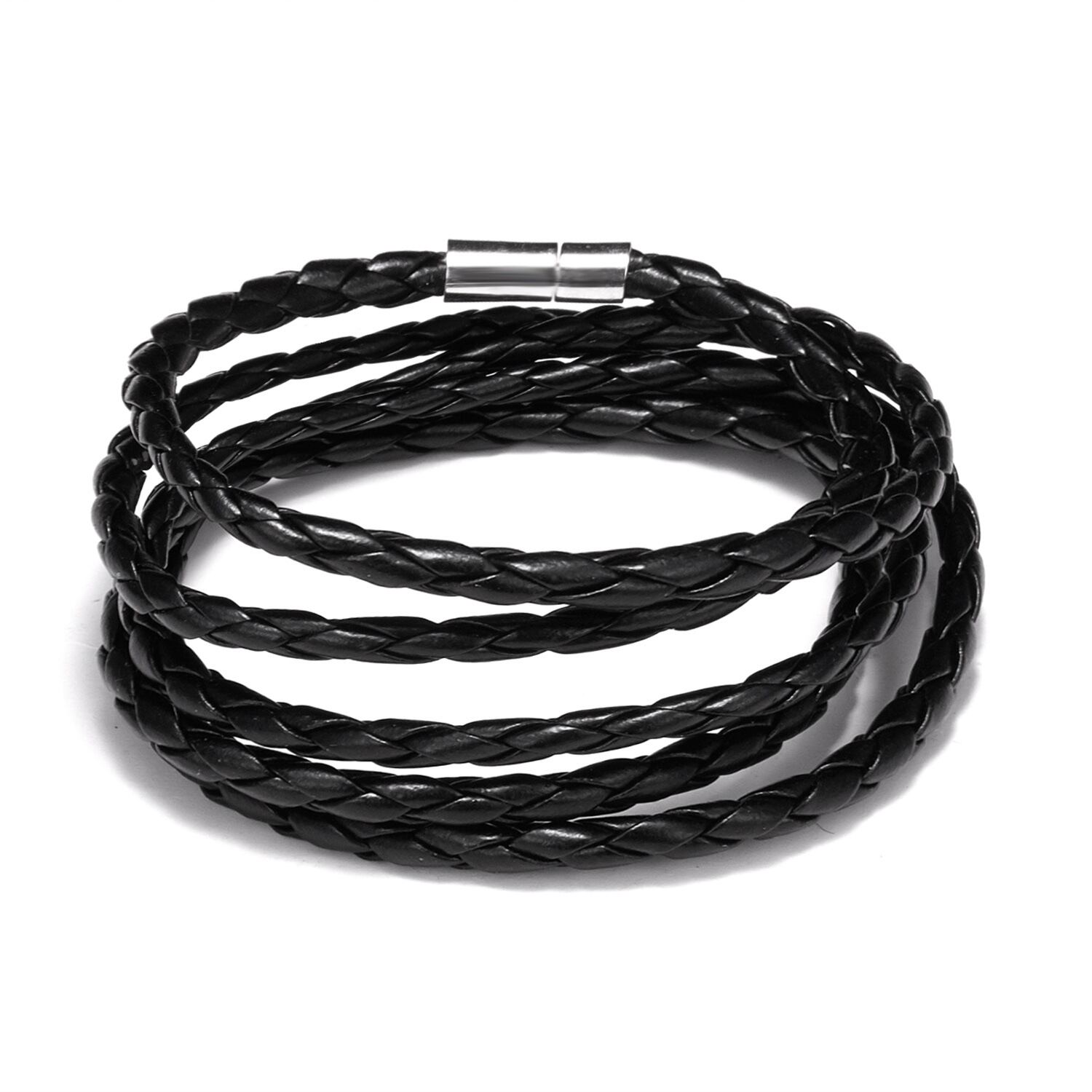 送料無料 5多層メンズ編組レザーブレスレットアームバンドブラックカラー手作り織りラップブレスレットジュエリーパンクスタイル アクセサリー AE1332221613108495826