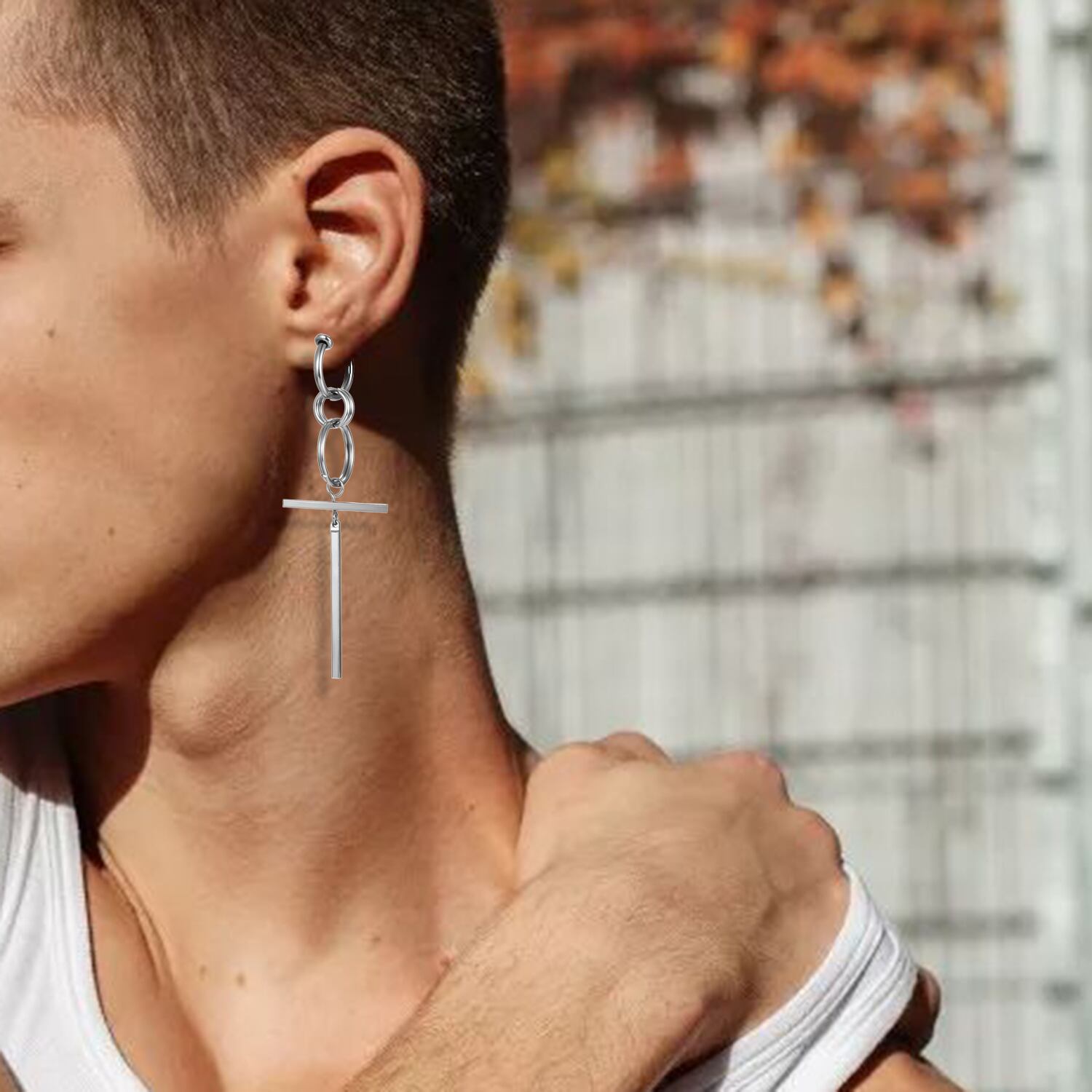 送料無料 1PCステンレススチールクロスペンダントイヤリングメンズパンクジオメトリダングルロングテルユニセックス非ピアスピアスジュエリーギフト アクセサリー AE1332221688673092155