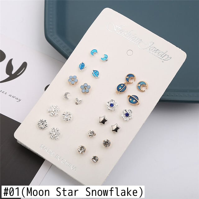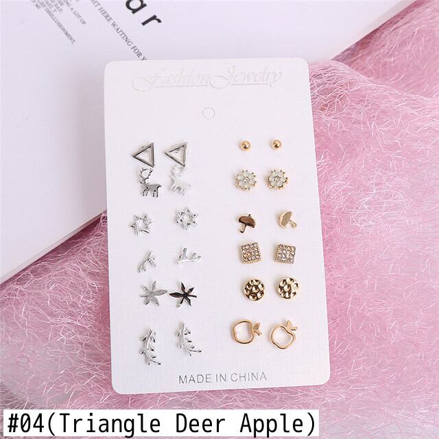 送料無料 12ペア/セットシンプルなミックスカラーの女性バタフライボウノットフラワーハートスモールメタルスタッドピアスセットガールピアスジュエリー リボン イヤリング リング 指輪 フラワーデザイン アクセサリー AE1332221688119565272